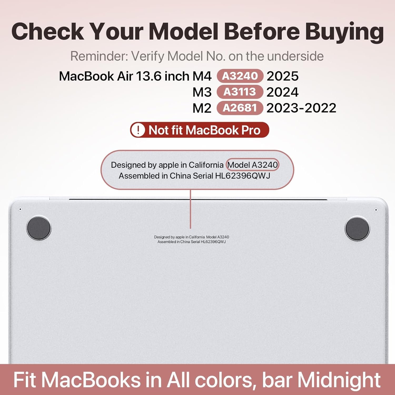 Note: Designed ONLY to be compatible with MacBook Air 13.6 inch 2025 2024-2022 M4 M3 M2 Chip with Liquid Retina Display & Touch ID (Model: A3240 / A3113 / A2681). WARNING: This case is NOT compatible with other model laptops