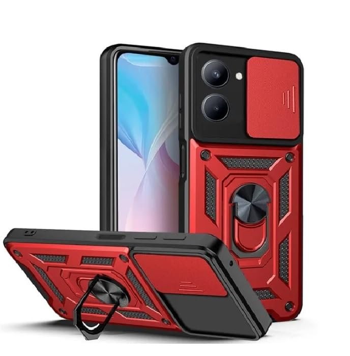 ConnectPoint Case for iQOO Z9 Lite, Shutter Heavy Duty Hard Tough Silicone TPU Dual Layer Hybrid Shockproof Cover,Ring Kickstand for iQOO Z9 Lite 5G – Red