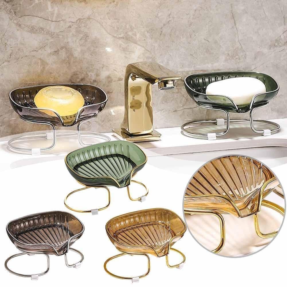 ConvertKitchen Soap Holder Self Draining Soap Dish Holder, Not Punched Easy Clean Bar Soap Holder, Soap Dish with Golden Metal Stand,Suitable for Shower, Bathroom, Kitchen Sink Bathtub