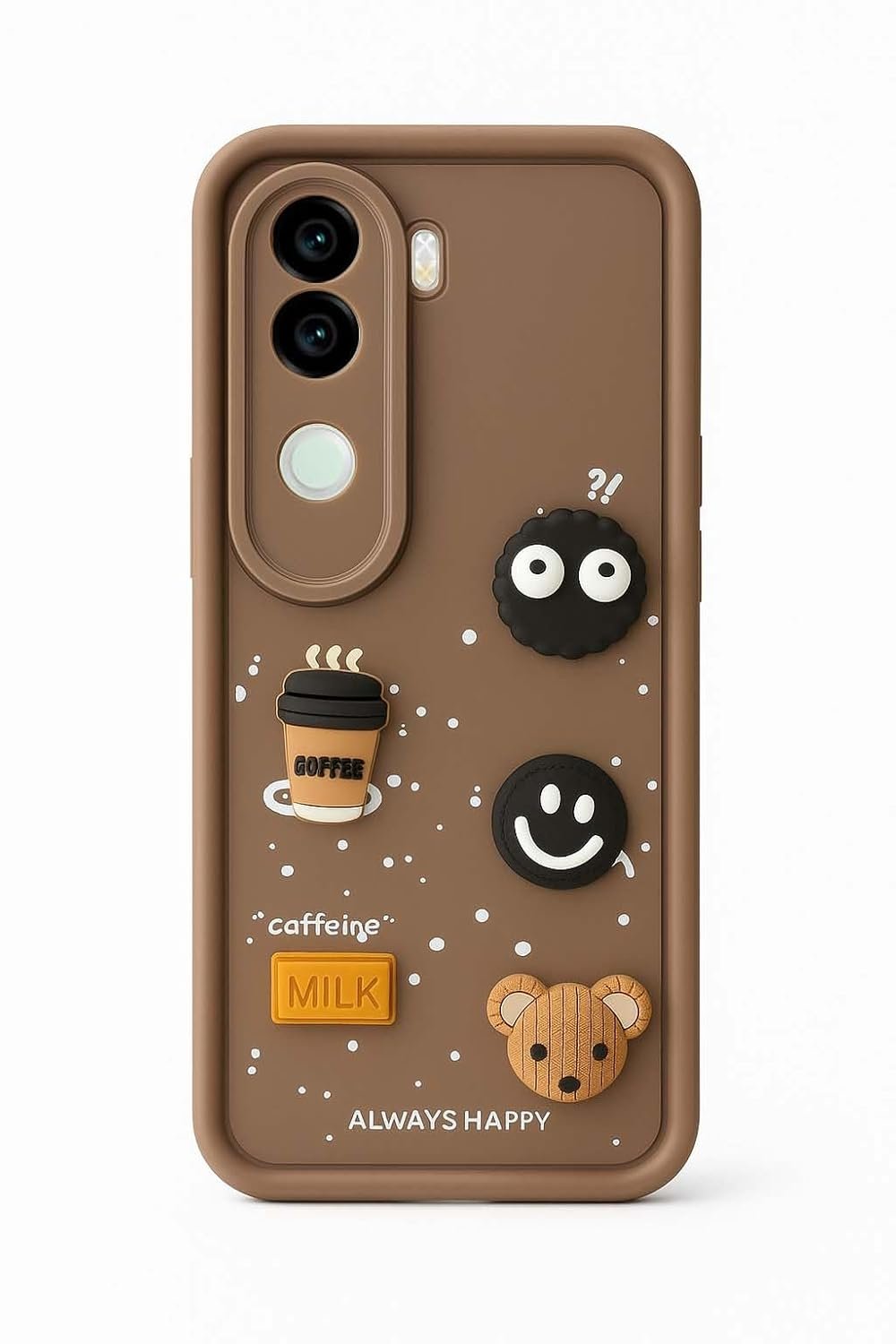 Coverage Fun Ball | Taddy Cartoon 3D Smiley Coffee | Milk Case | Full Camera Protection Back Cover Compatible for IQOO I2403 / Z9s 5G – Brown