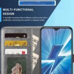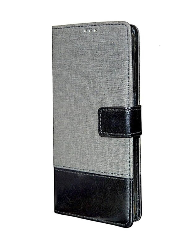 COVERBLACK Dual Colour Joint Denim Cloth & Vegan Leather Magnetic Case Cover with Card & Cash Wallet Flip Cover Compatible for Realme Narzo N61 – Grey & Black