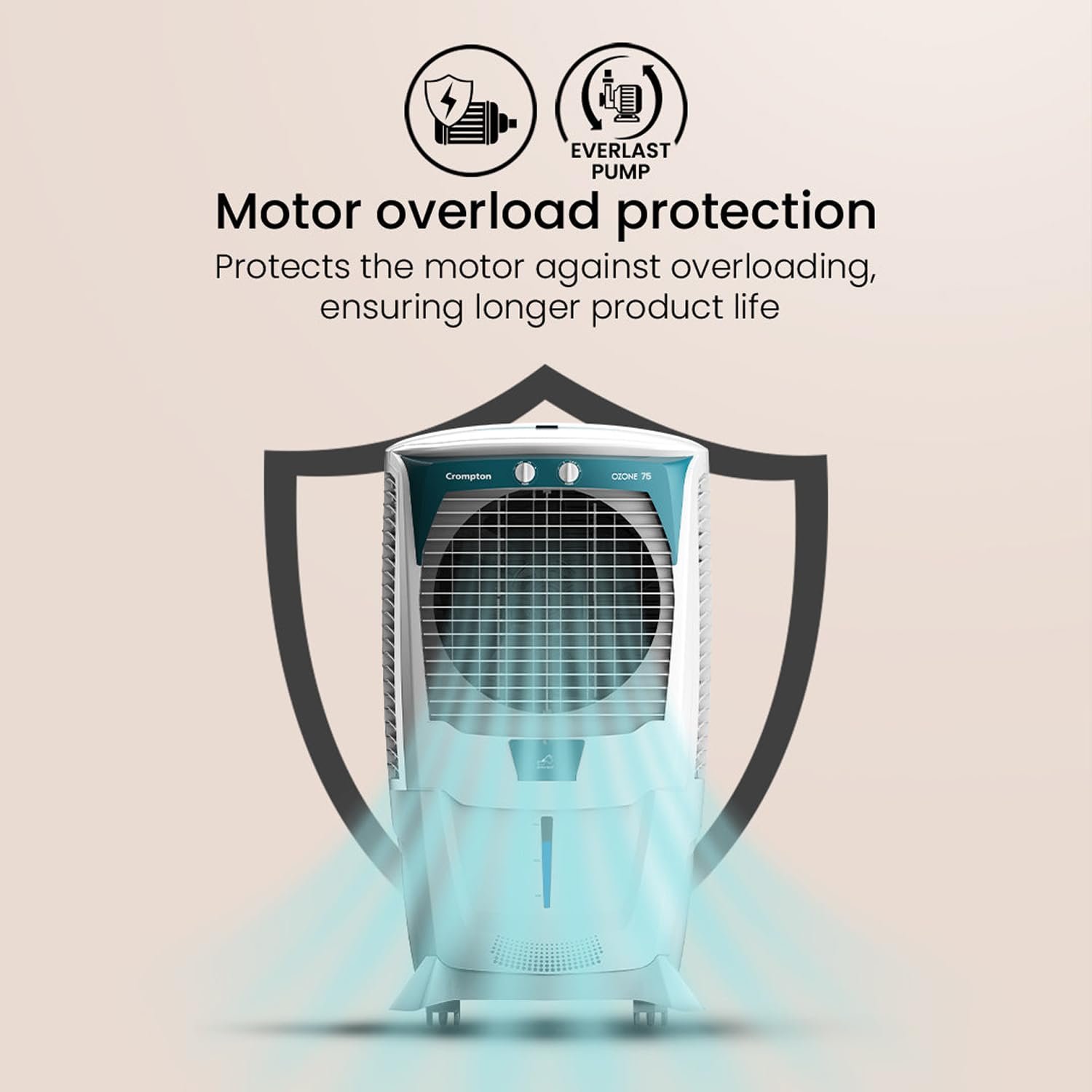 Crompton Ozone 75 Litres Desert Air Cooler for home | Large & Easy Clean Ice Chamber | 4-Way Air Deflection | High Density Honeycomb Pads | Everlast Pump | Auto Fill