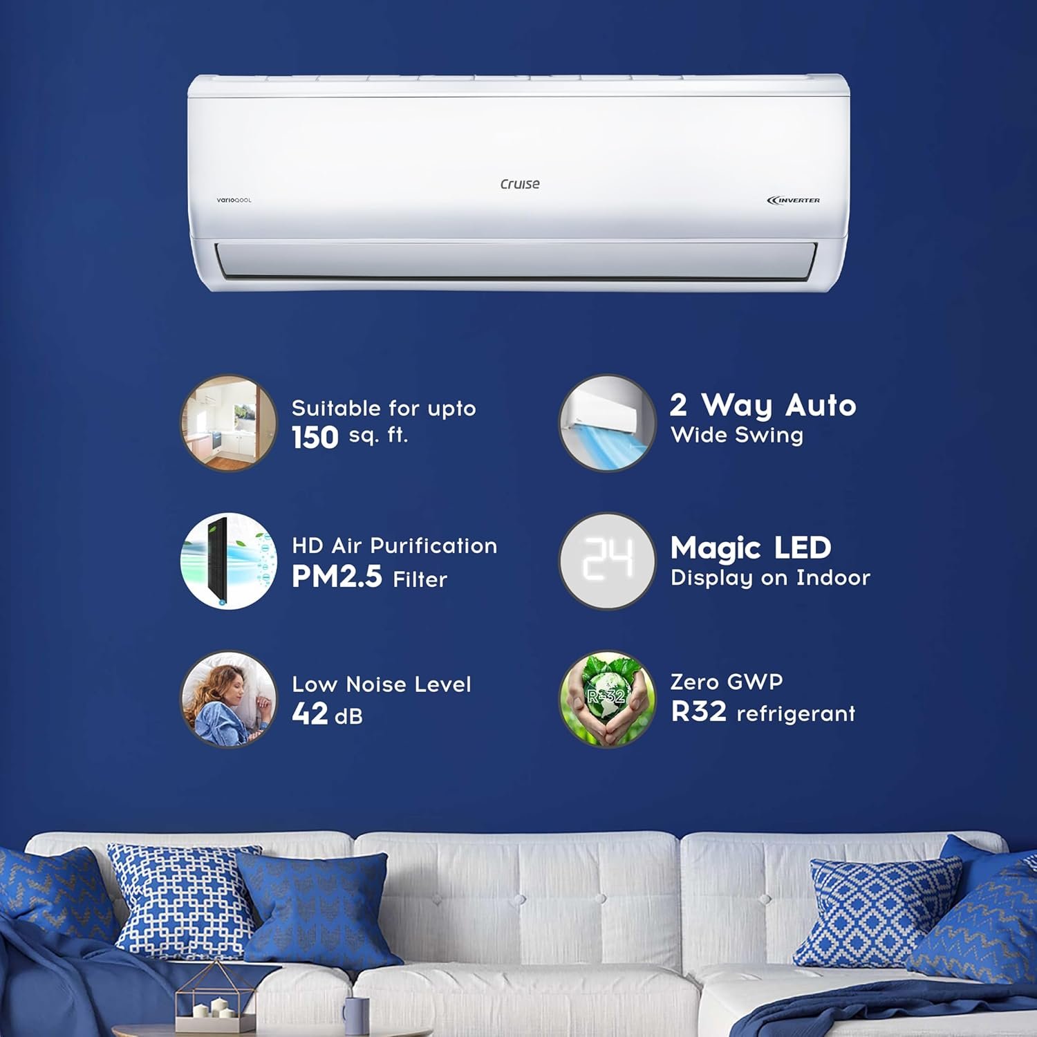 Cruise 1.5 Ton 5 Star Inverter Split AC with PM2.5 Air Purification (100% Copper, Convertible 4-in-1, Fast Cooling & Energy Saving, PM 2.5 Filter, Anti-Rust Tech, 2025 Model, CWCVBK-VQ3D185, White)