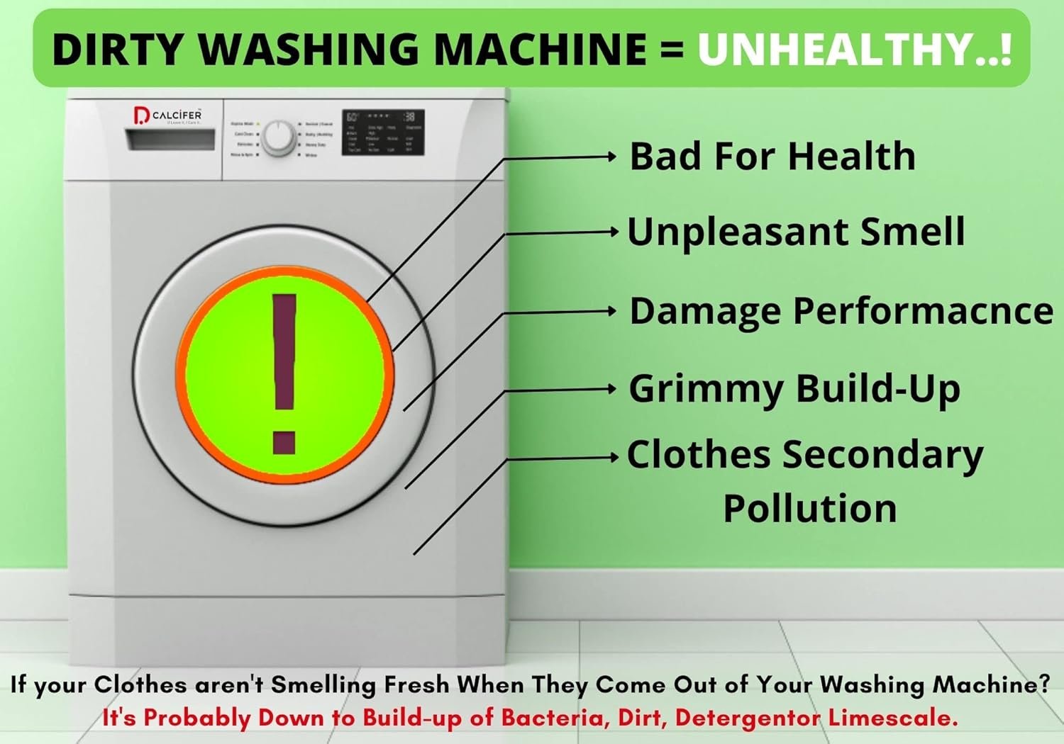 ☝️ [ ONE STEP SOLUTION FOR ] – If Your Machine Smells Bad , Dirty Clothes Output After Washing , Clothes With Lint and Patches , unpleasant Smell From Washed Clothes , Grimmy Buildups Causes Health Issues Like Rashes and Itches , Often Stuck in operation , High Electricity consumption and Secondary Laundry Pollution Buildups, Lime Scale Deposits high Due to usage Of Hard Water , Bore and Well Water.