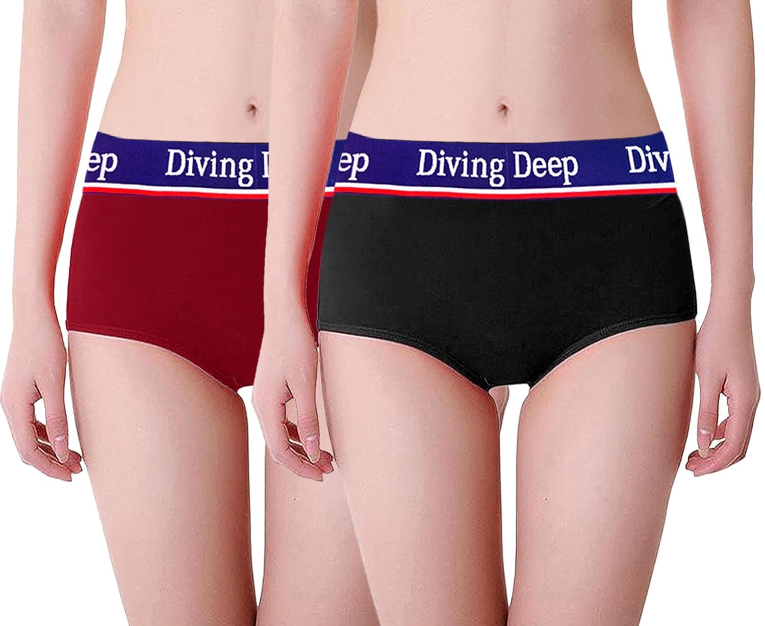 Deep Diving Underwear for Women, Cotton Briefs Panties for Women, Girls Stretchy Underpants, mid Waist Hipster Panties_2 Pack