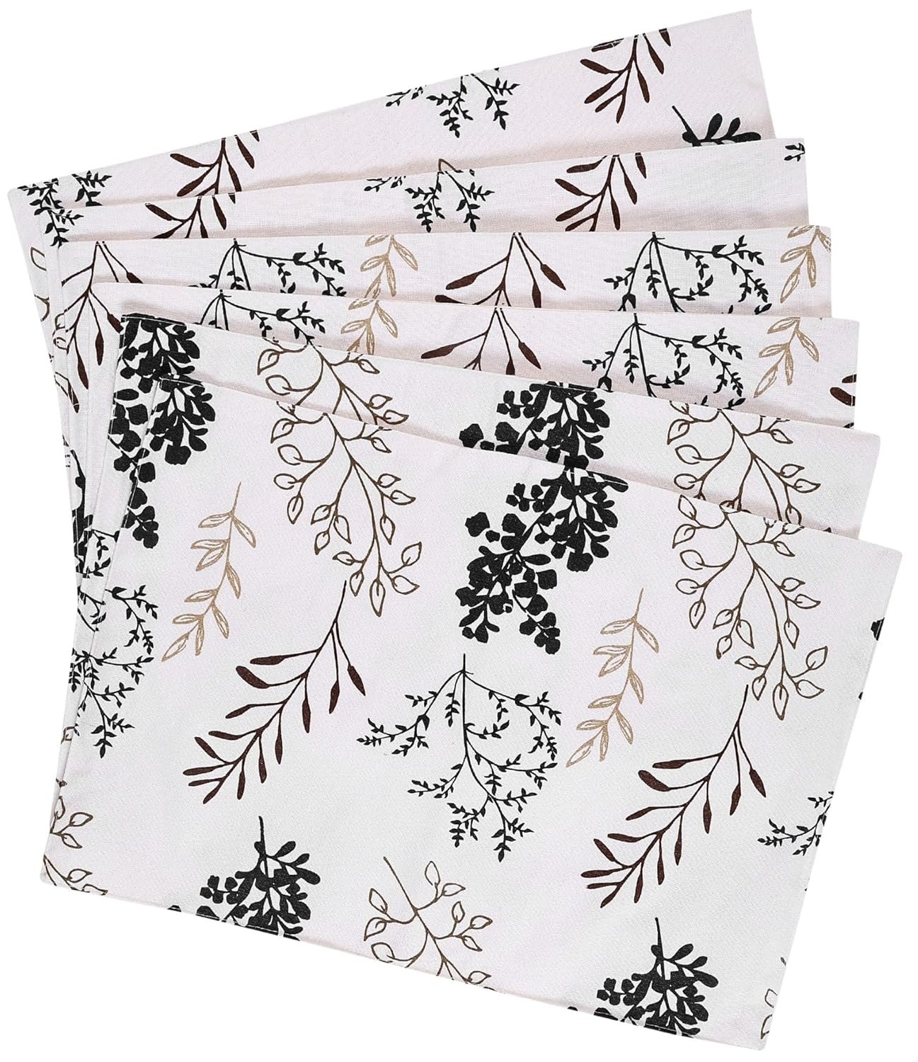 Dekor World Cotton Bloom Bliss Printed Collection Square Table Cover with Place Mat (Midnight Black, 150×150 cm or 60×60 Inches or 4 Seater, Pack of 5 Piece)-for Dining and Center Table