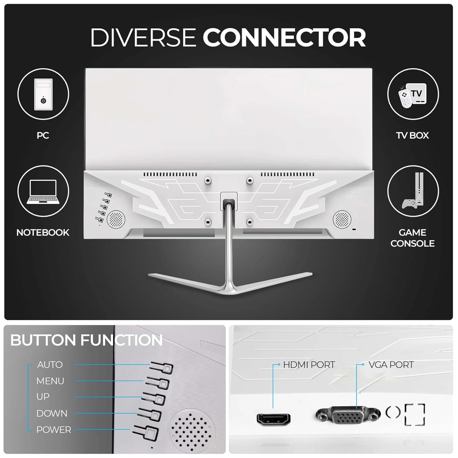 CONNECTIVITY: Multiple ports including HDMI and VGA, compatible with TV boxes, gaming consoles, notebooks, and PCs