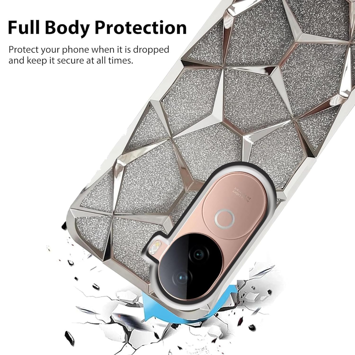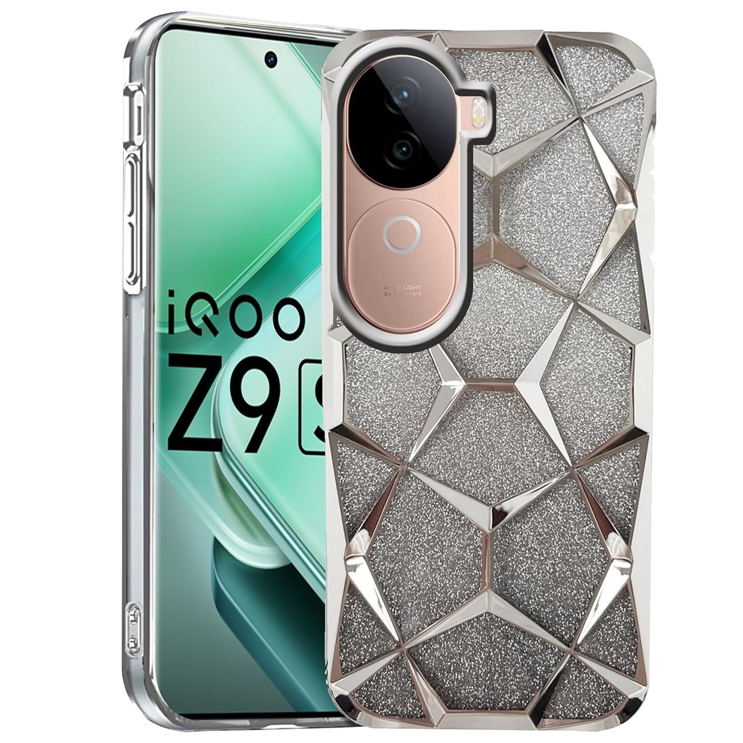💎 Stylish Glitter Design – Eye-catching gradient with 3D geometric diamond texture adds a luxurious and trendy look to your for Vivo V40e / iQOO Z9s 5G.