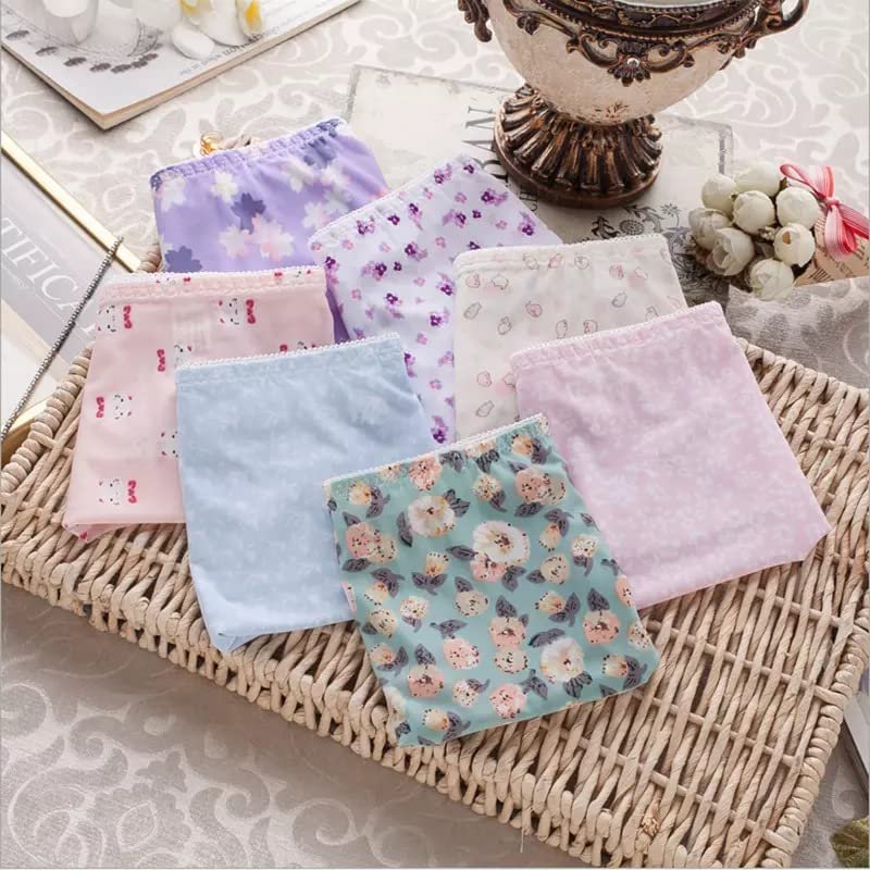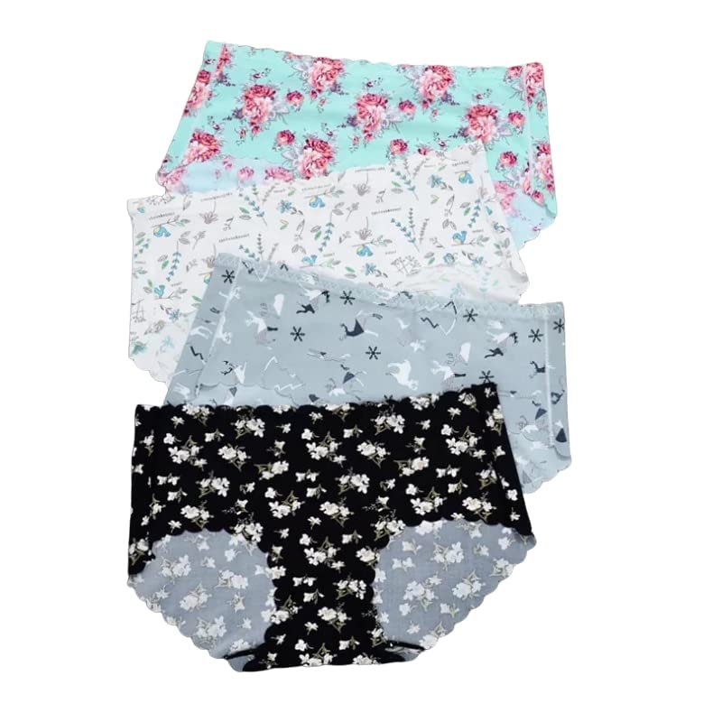 Dhruva Sales Women’s Cotton Ice Silk Printed Seamless Medium Waist Briefs Ladies Underwear Random Design Multicolor(Pack of 3)