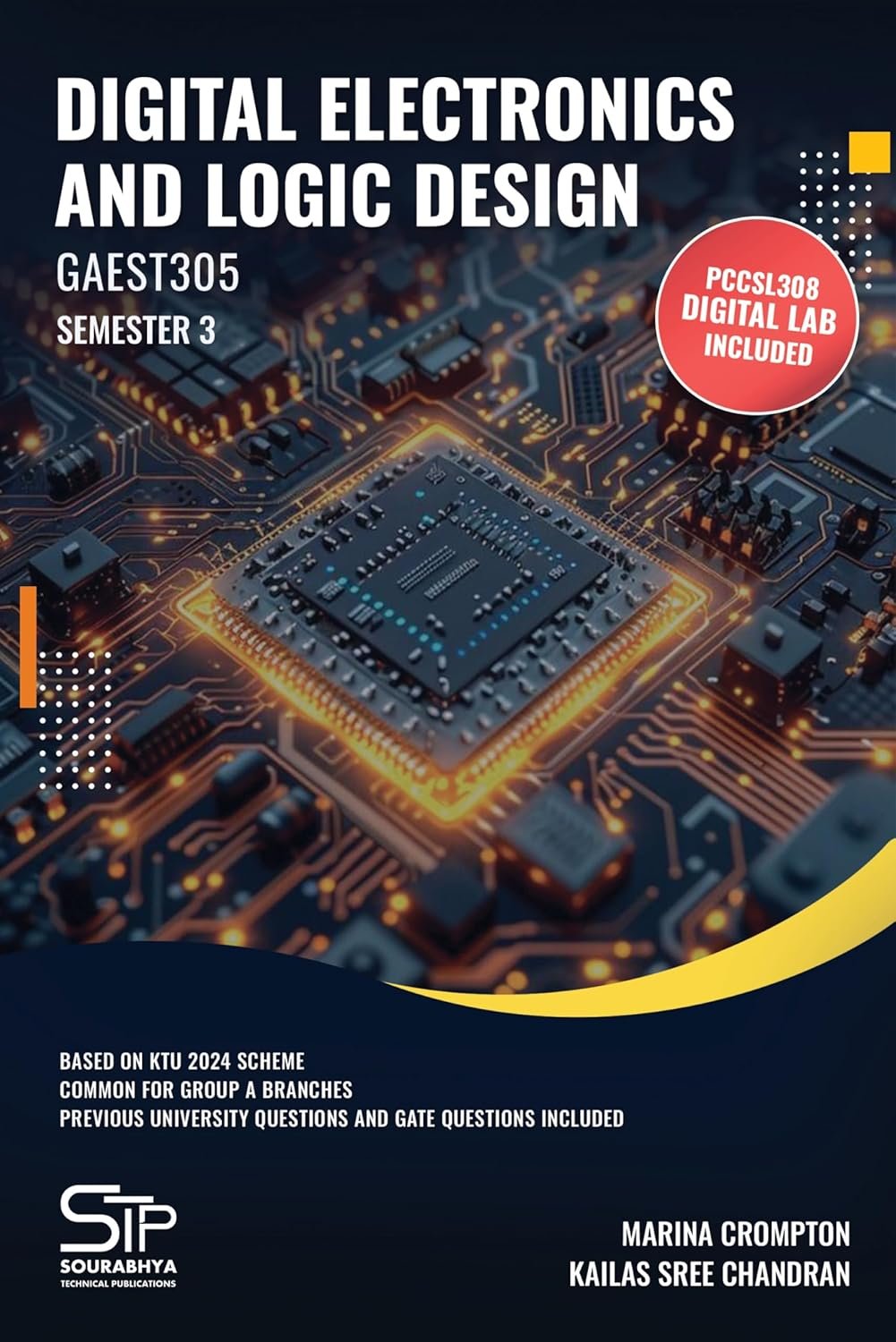 This textbook has been prepared in alignment with the syllabus of Digital Electronics and Logic Design for the third semester B.Tech (Group A branches) under the 2024 Scheme of APJ Abdul Kalam Technological University (KTU). Course code: GAEST305 Includes portions for DIGITAL LAB PCCSL308 BOOK HIGHLIGHTS: ✅𝙲𝚘𝚟𝚎𝚛𝚜 𝟷𝟶𝟶% 𝚜𝚢𝚕𝚕𝚊𝚋𝚞𝚜 ✅𝙲𝚘𝚗𝚝𝚎𝚗𝚝𝚜 𝚏𝚘𝚛 *𝙿𝙲𝙲𝚂𝙻𝟹𝟶𝟾 𝙳𝙸𝙶𝙸𝚃𝙰𝙻 𝙻𝙰𝙱* 𝚒𝚗𝚌𝚕𝚞𝚍𝚎𝚍 ✅𝙳𝚎𝚝𝚊𝚒𝚕𝚎𝚍 𝚎𝚡𝚙𝚕𝚊𝚗𝚊𝚝𝚒𝚘𝚗 𝚘𝚏 𝐕𝐄𝐑𝐈𝐋𝐎𝐆 ✅𝙼𝚘𝚍𝚞𝚕𝚎-𝚠𝚒𝚜𝚎 𝚀𝚞𝚎𝚜𝚝𝚒𝚘𝚗 𝙱𝚊𝚗𝚔 ✅𝙿𝚛𝚎𝚟𝚒𝚘𝚞𝚜 𝙶𝙰𝚃𝙴 𝚚𝚞𝚎𝚜𝚝𝚒𝚘𝚗𝚜