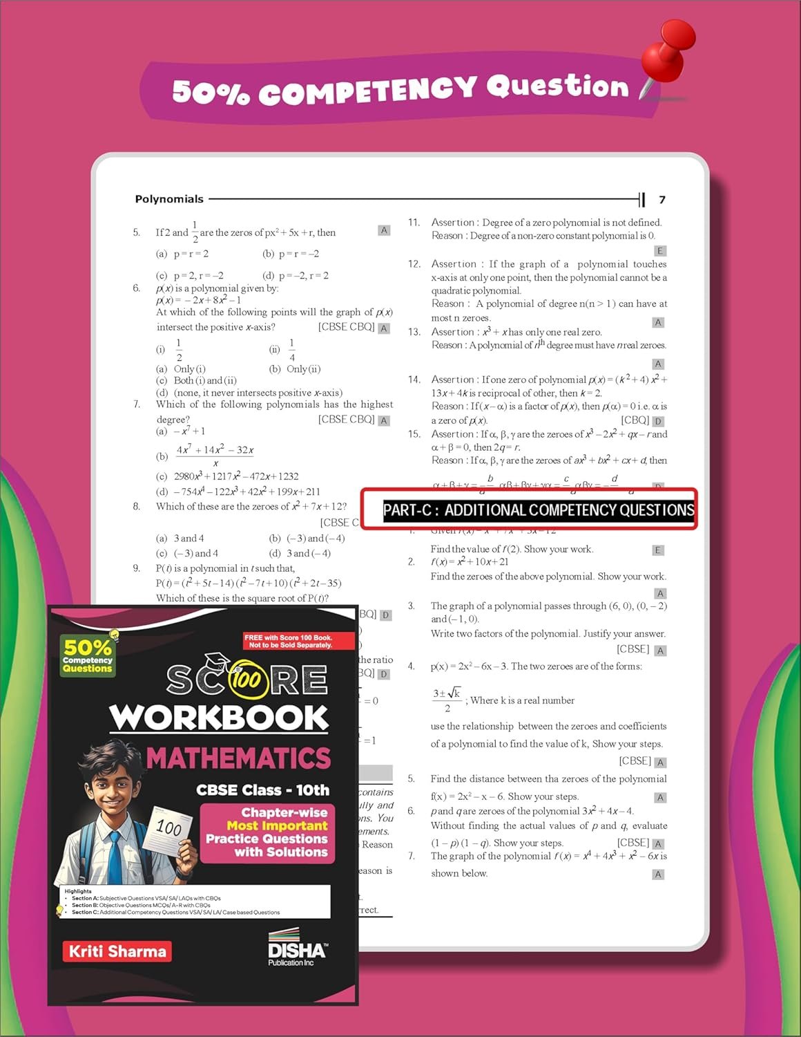 Disha presents the thoroughly updated & revised 5th edition on the New Syllabus of its most celebrated title, Score 100 Mathematics CBSE Class 10 – 10 Previous Year-wise Solved Papers (2016 – 2025) with Free Revision Workbook. Score 100 are tailor-made for Class 10 students as they provide the most important resourse for students, the Previous Year Question Papers along with Cheat Sheets (Quick Revision Notes) & Practice Question Bank (Workbook) thus making it an ideal Book for Revision & Practice.