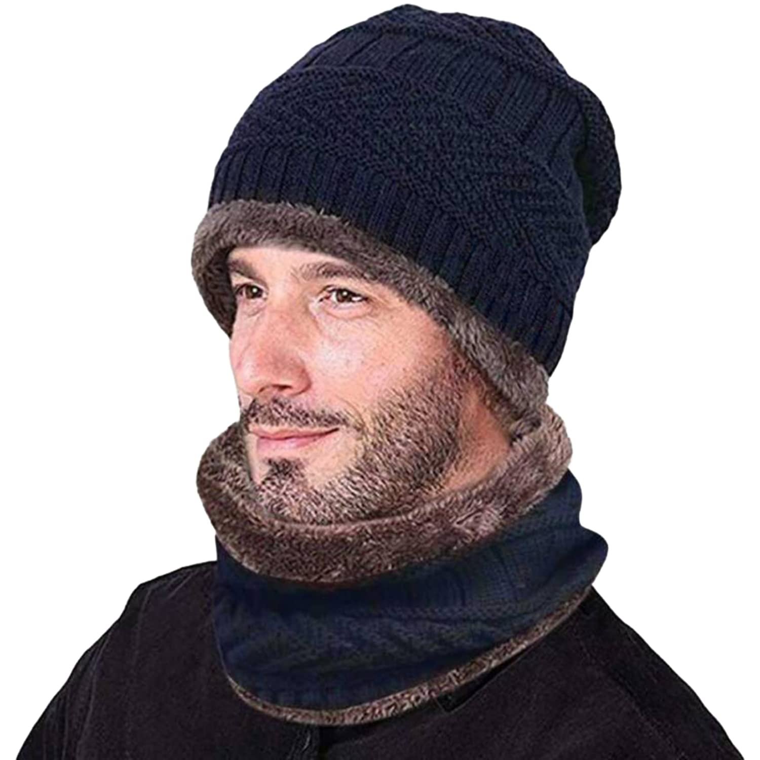 Diversify Winter Knit Beanie Cap Hat Neck Warmer Scarf Set for Men & Women (2 Piece)