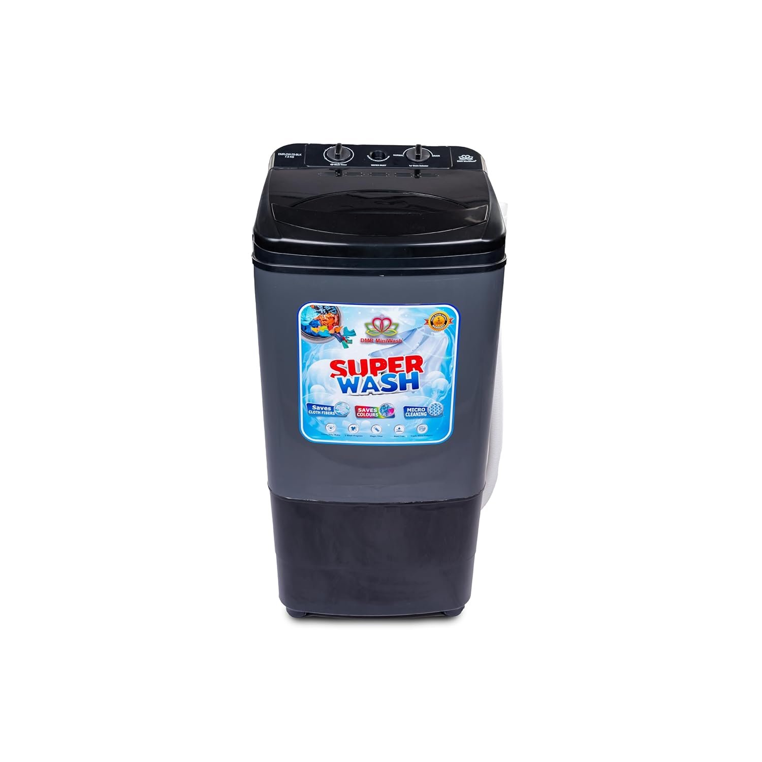 Effortlessly tackle your laundry with DMR’s 7.5 kg Washer. Its Triple Wave Pulsator technology allows detergent to penetrate deep into fabrics for a thorough clean. With a spacious 7.5 kg capacity, this appliance can handle large loads with ease. The Magic Filter traps lint, while the Thermal Protection safeguards the motor for longevity. Constructed with an Anti-Rust Body, this washing machine promises durability. Experience hassle-free laundry days with this efficient and reliable DMR Washer. DMR OW -75 is loaded with below features and spectificaitons Thermal Protection for motor Anti Rust body Magic Filter Light weight and Portable Tripal wave pulsator Washing Capacity – 7.5 Kg Contents 1 N Washing Machine 1 N Inlet Pipe 1 N User Manual cum Warranty Card Gross Dimension (LxWxH) (mm – 510 x 465 x 985 mm Gross Weight (Kg.) – 13.5 Kg (approx) Net Dimension (LxWxH) (mm) – 505 x 430 x 955 mm Net Weight (Kg.) – 11 Kg (approx) Warranty – 1 year free spare supply warranty