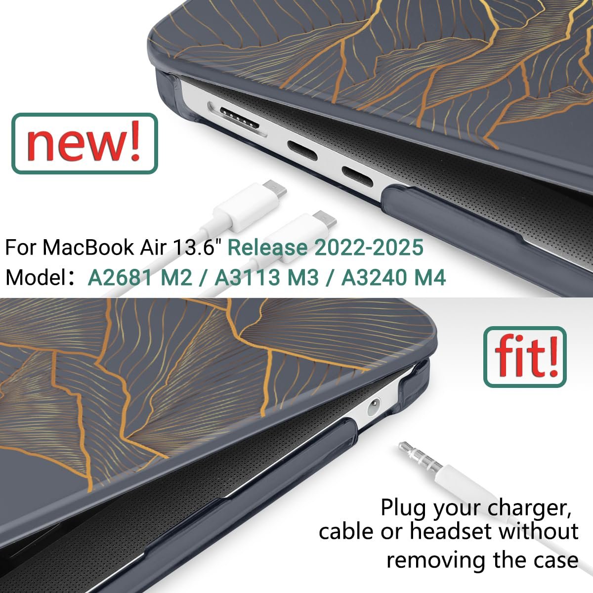 For NEWEST MACBOOK Air 13.6 INCH CASE – Only Design for MacBook Air 13.6 inch 2025 2024 2023 2022 with Liquid Retina Display & Touch ID (Model: A3240 M4 Chip/ A3113 M3 Chip/ A2681 M2 Chip). Check your device model before purchasing.