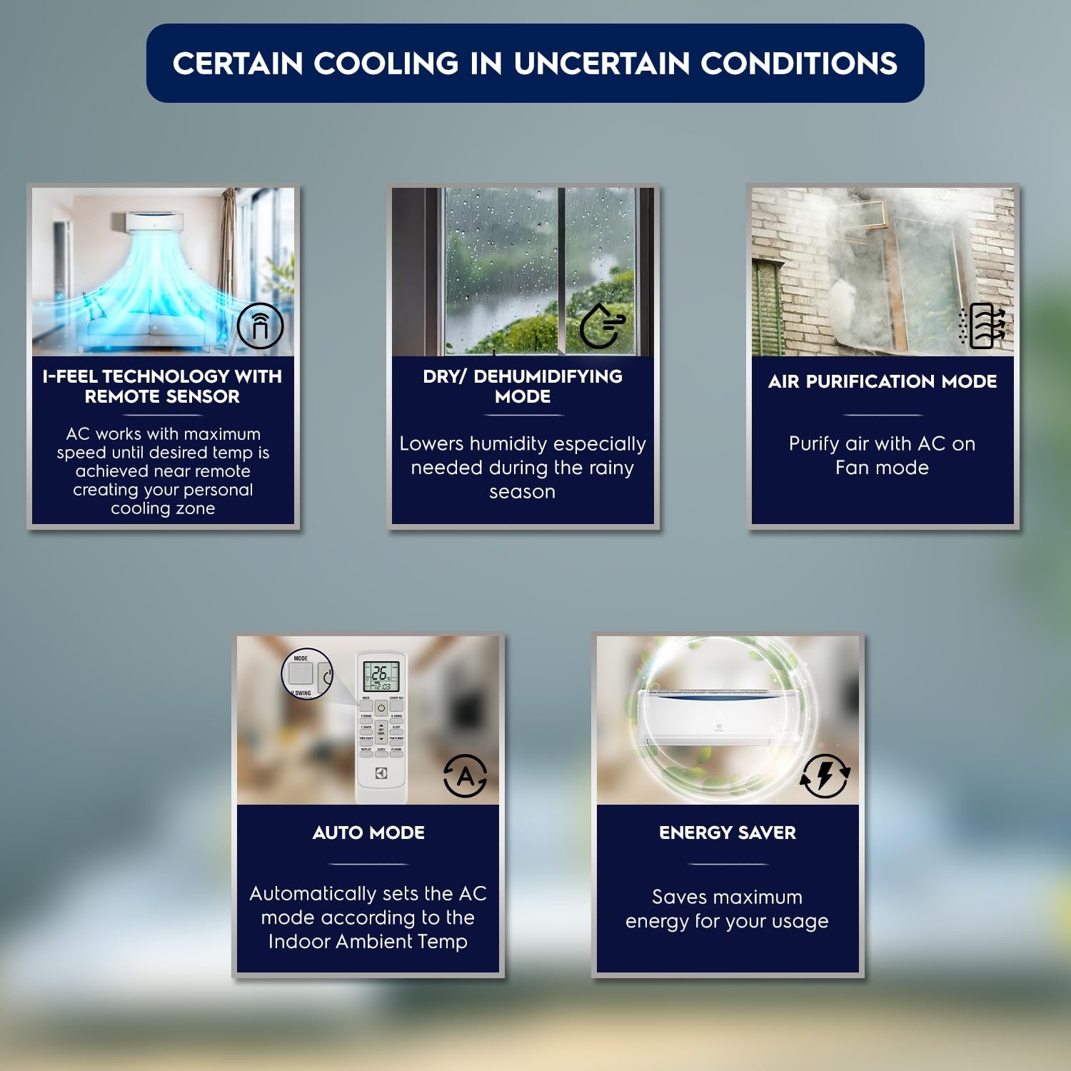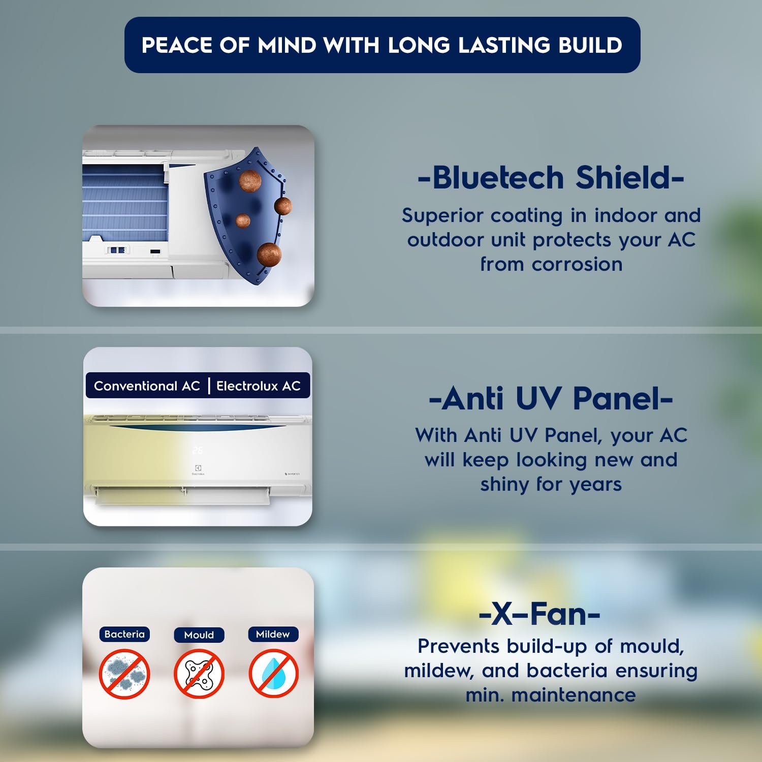Electrolux 1.5 Ton 3 Star Convertible Inverter Split Air Conditioner (AC), 100% Copper, PM2.5 Filter, I-Feel Tech, Anti-Corrosion and R32, White & Dark Blue, UltimateHome 300, ESV183C1AA