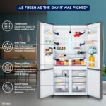 CUSTOMIZE YOUR FRIDGE EFFORTLESSLY: With FlexStor function, you can arrange your refrigerator as per your needs with adjustable door bins and shelves. This multidoor refrigerator comes with different-sized compartments that effortlessly accommodate items, whether they are big or small.