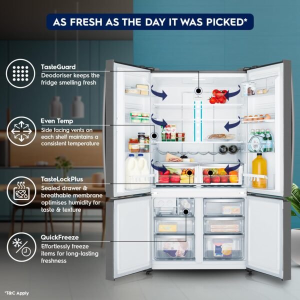 CLEAN AND HYGIENIC STORAGE: This multidoor refrigerator comes with TasteGuard Deodorizer function that uses carbon filter to keep your food fresh, hygienic, and free from unwanted odours.