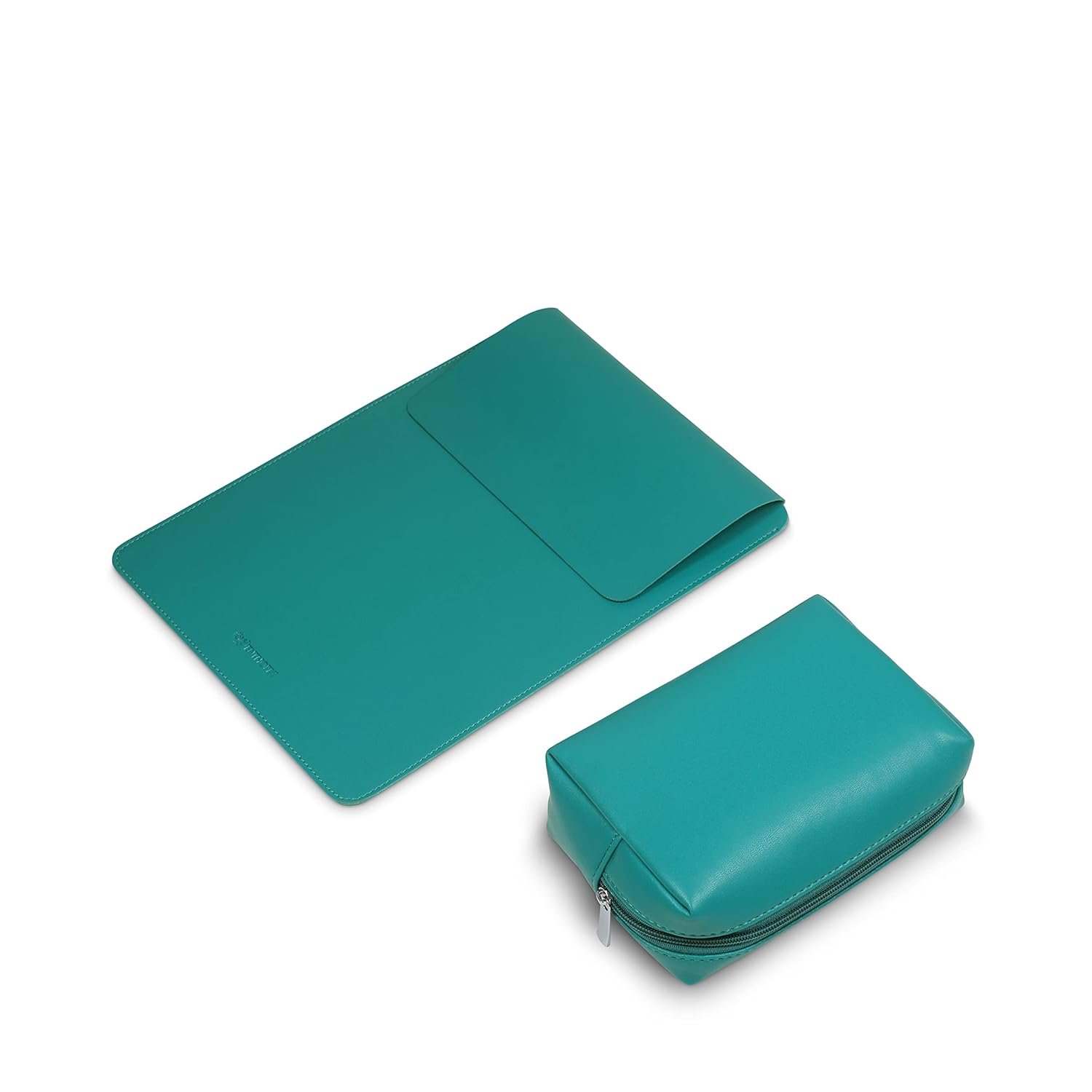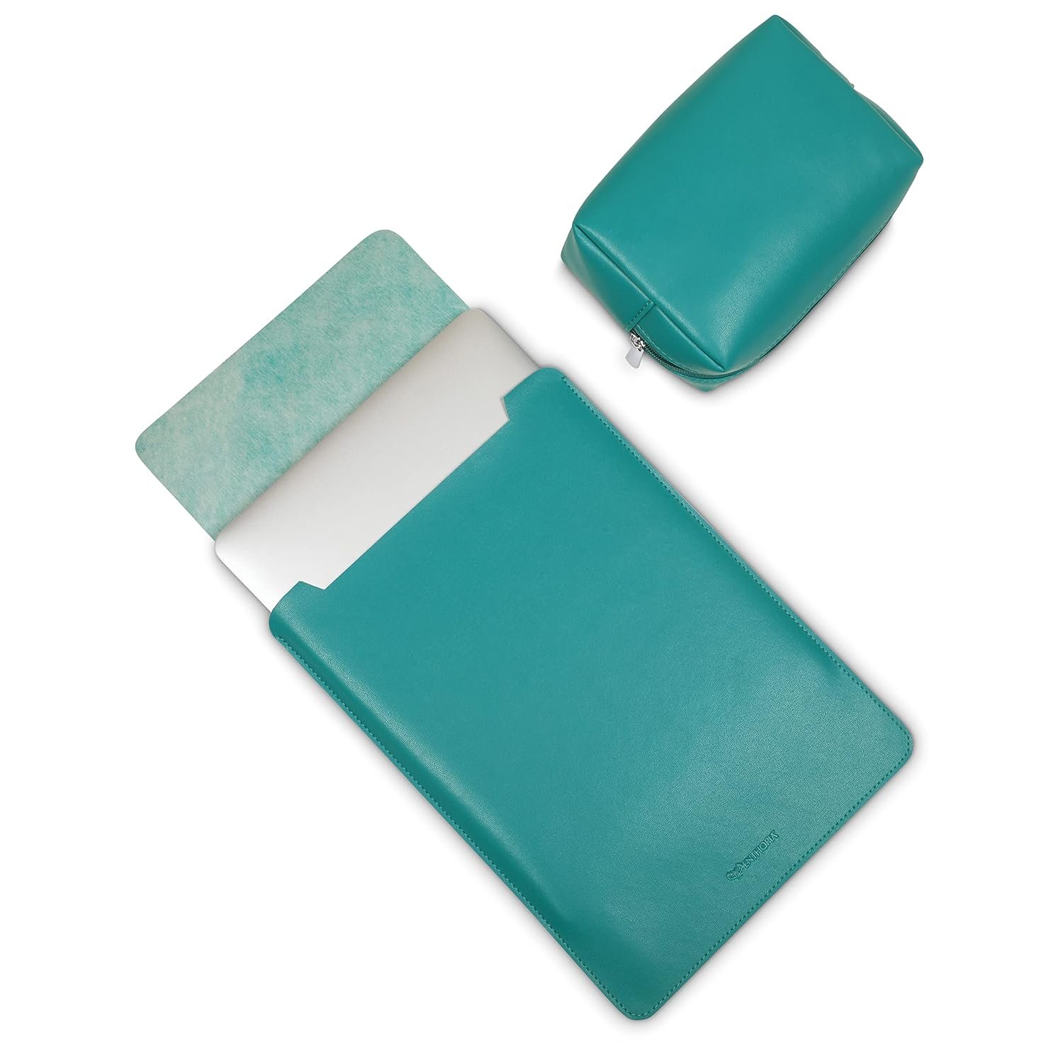 ENTHOPIA Vegan Leather Laptop Sleeve and Pouch Compatible with MacBook Air 13.6” M2 A2681 2022-2023 | Slim Fit, Soft Lining, Water Resistance Laptop Cover | Teal