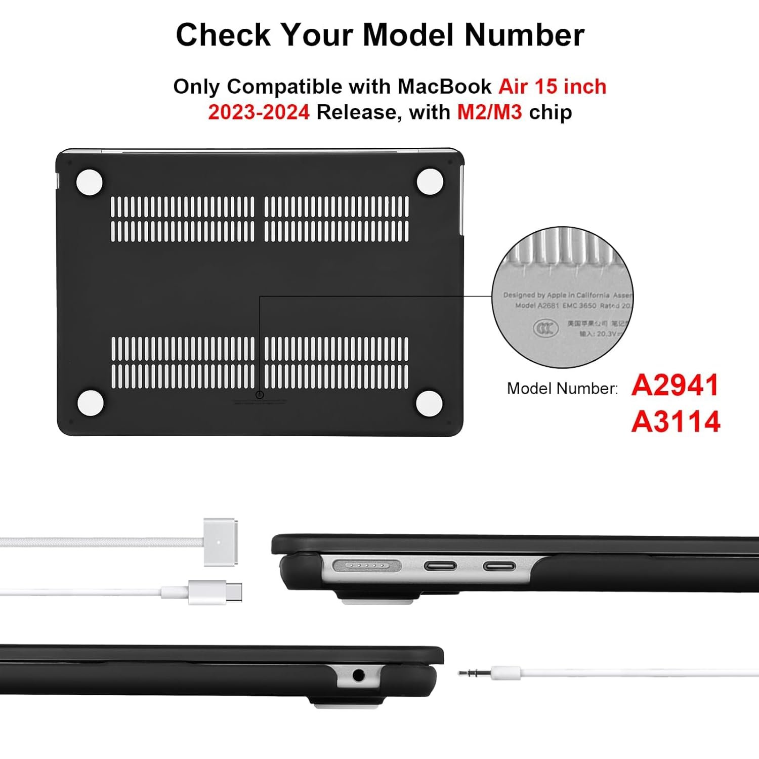 ✔️ Only Compatible for NEW M4 M3 M2 Macbook Air 15.3/15 inch with Touch ID(Model:A3241 A3114 A2941,Released in 2025 2024 2023) Please check the Macbook model “AXXXX” on the back before purchasing. Not compatible with other Macbook model