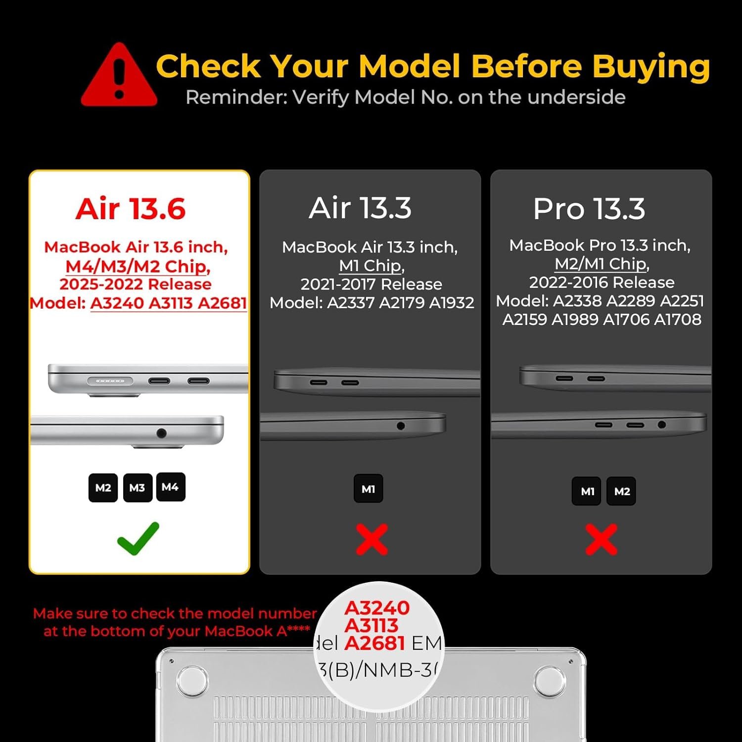 ✔️ Air 13 Only Compatible for NEW 𝐌𝟒 𝐌𝟑 𝐌𝟐 𝐌𝐚𝐜𝐛𝐨𝐨𝐤 𝐀𝐢𝐫 𝟏𝟑.𝟔 𝐢𝐧𝐜𝐡 with Touch ID(Model:𝐀𝟑𝟐𝟒𝟎 𝐀𝟑𝟏𝟏𝟑 𝐀𝟐𝟔𝟖𝟏,Released in 𝟐𝟎𝟐𝟓 𝟐𝟎𝟐𝟒 𝟐𝟎𝟐𝟑 𝟐𝟎𝟐𝟐) Please check the Macbook model “AXXXX” on the back before purchasing. Not compatible with other Macbook model