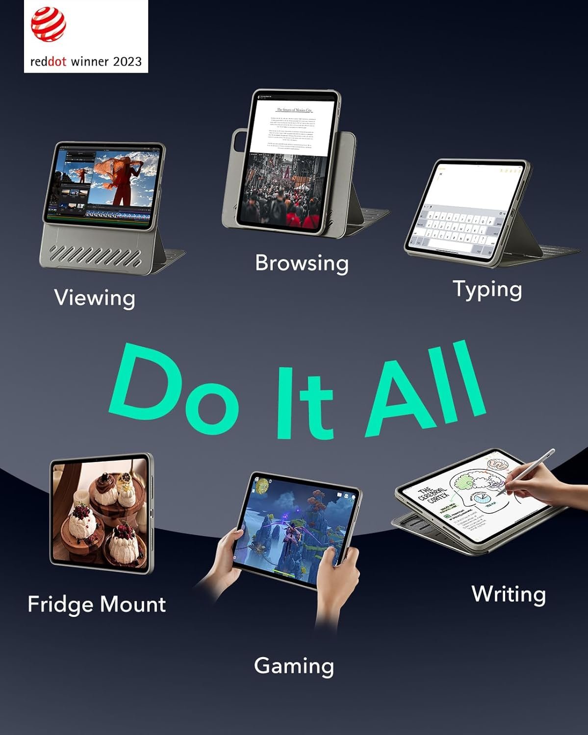 Powerful Versatility: achieve up to 9 different angles, 6 for viewing and 3 for writing, via the dual support brackets and 6 magnetic grooves, then instantly detach for hands-on gaming or to magnetically attach to your fridge