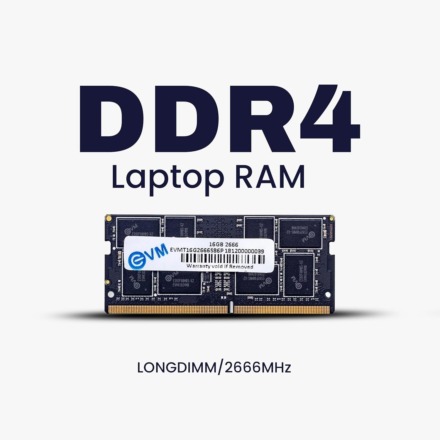 EVM 16GB DDR4 Laptop RAM 2666MHz – Update Your Laptop’s Performance – CL15 Latency – Compatible with Intel, AMD, and Mac Systems – 10 Years Warranty (EVMT16G2666S86P)