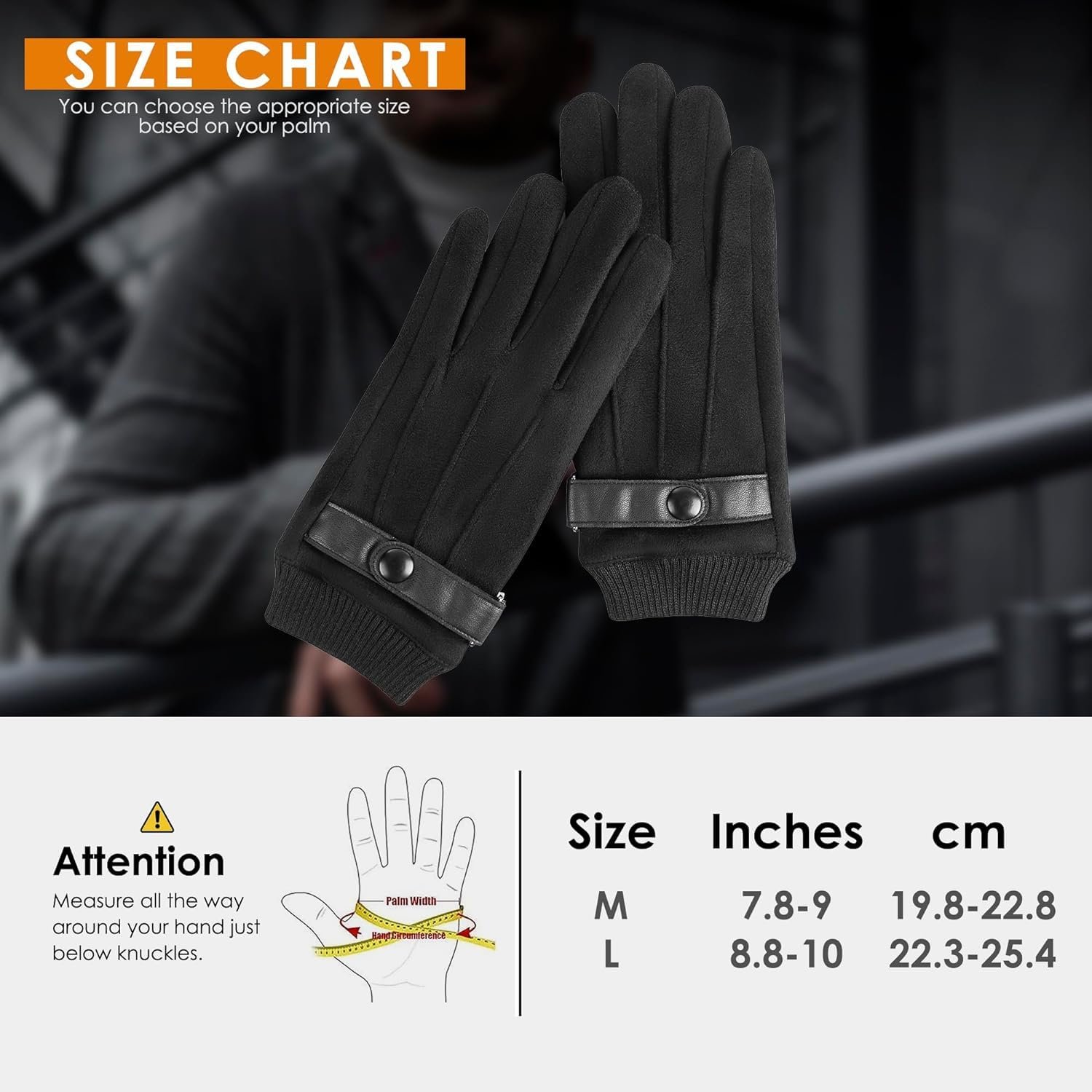 🔥【Quality Materials】 Men’s gloves are made of high-quality suede, with soft, full of elasticity, high strength, durable characteristics. The gloves are lined with Italian cashmere, which is super soft and comfortable and will keep your hands warm all day.