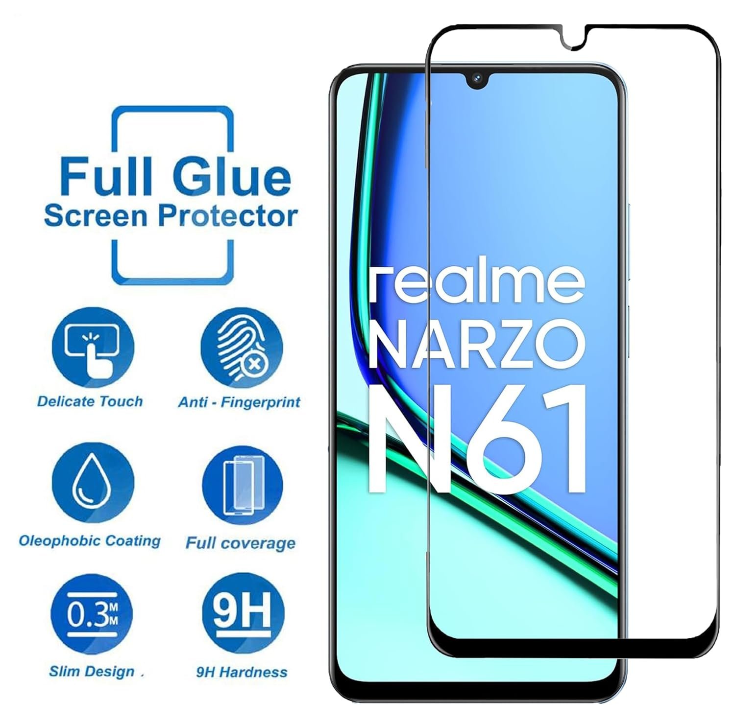 FabeKee Tempered Glass Screen Protector Compatible For Realme Narzo N61 Smartphone Black With Edge-To-Edge Protector Coverage And Easy Installation Kit (Realme Narzo N61)