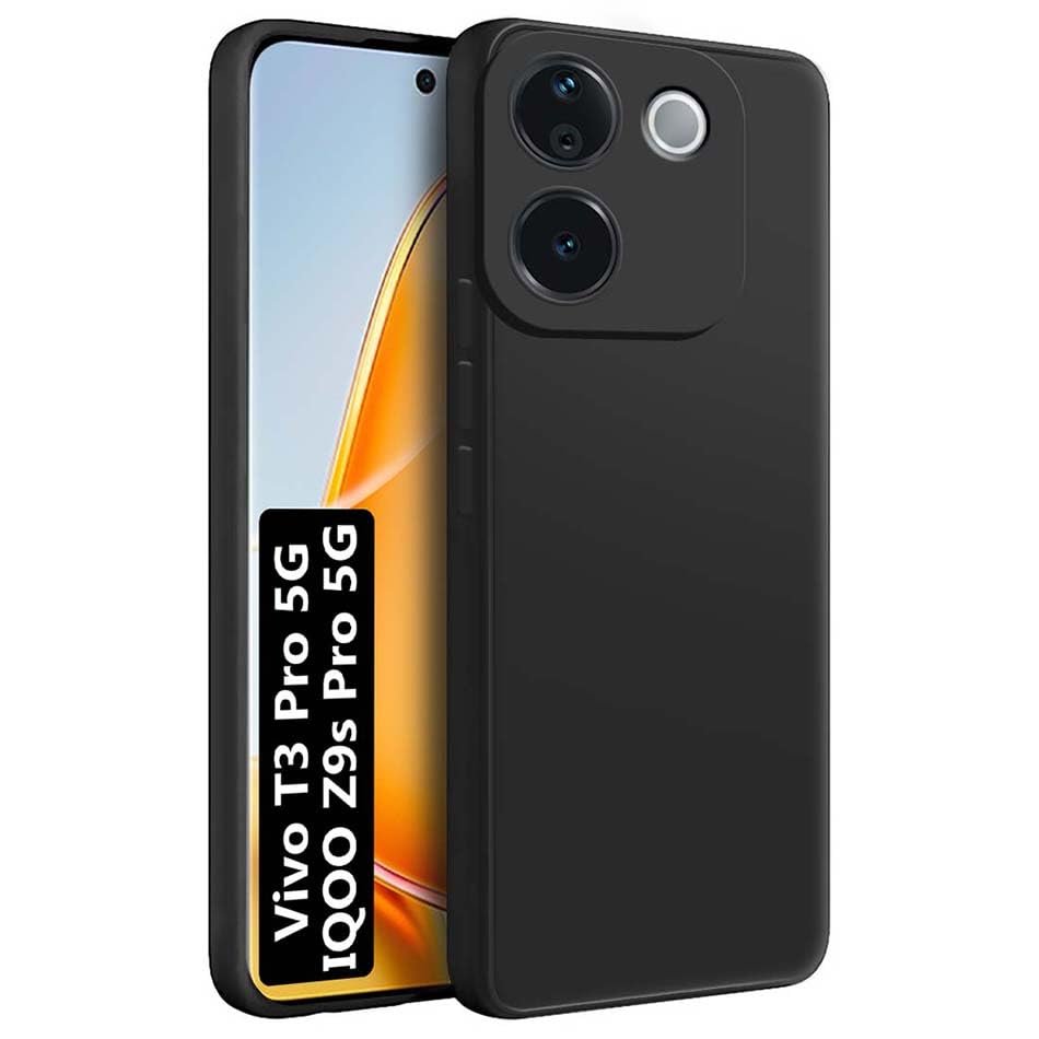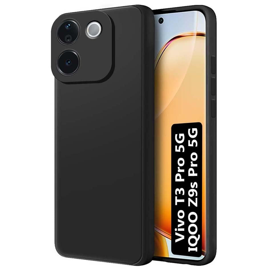 Fashionury Back Cover for iQOO Z9s Pro 5G / Vivo T3 Pro 5G | Camera Bump Protection | Matte Soft Silicon Flexible | Shock Proof Rubberised Back Case Cover for iQOO Z9s Pro 5G / Vivo T3 Pro 5G (Black)