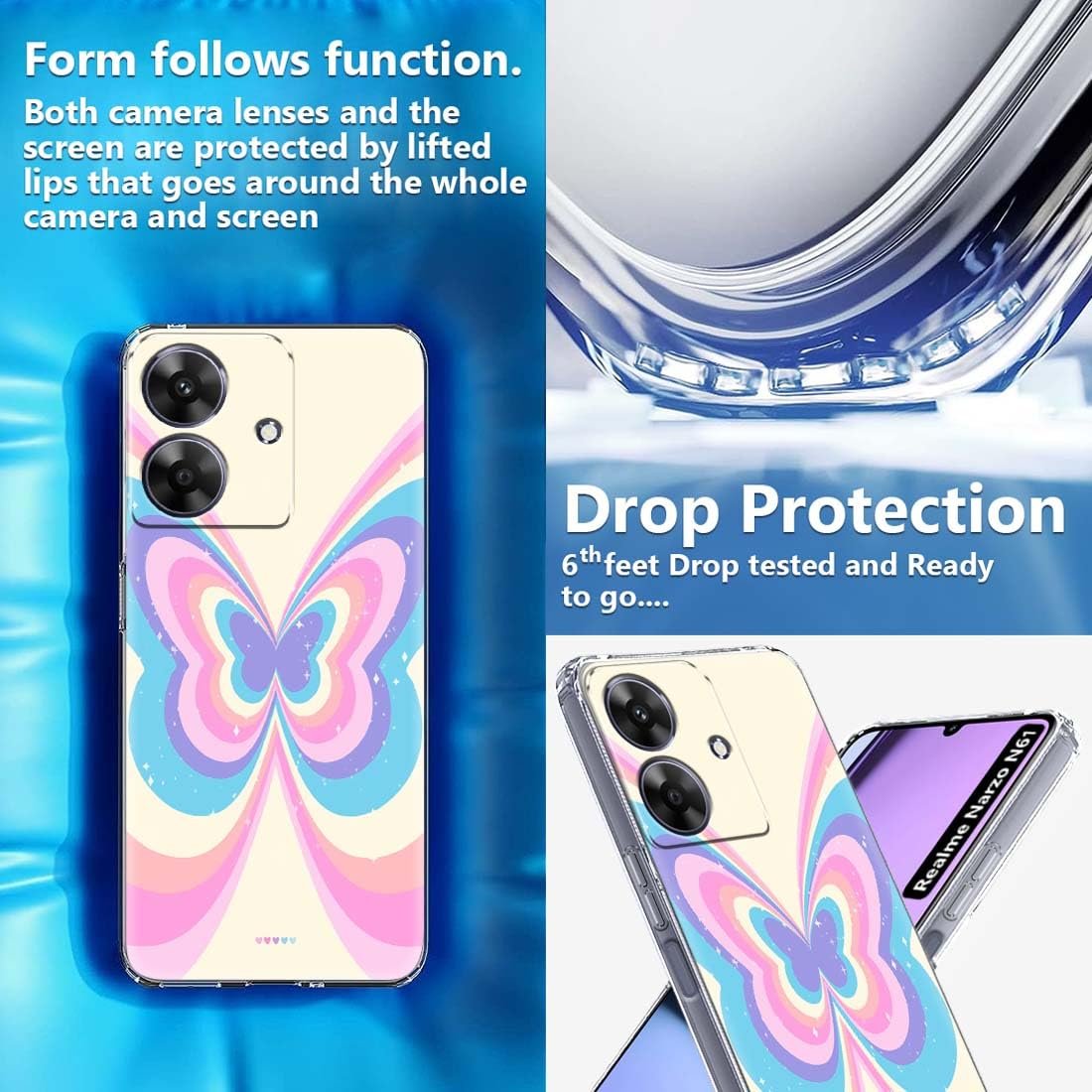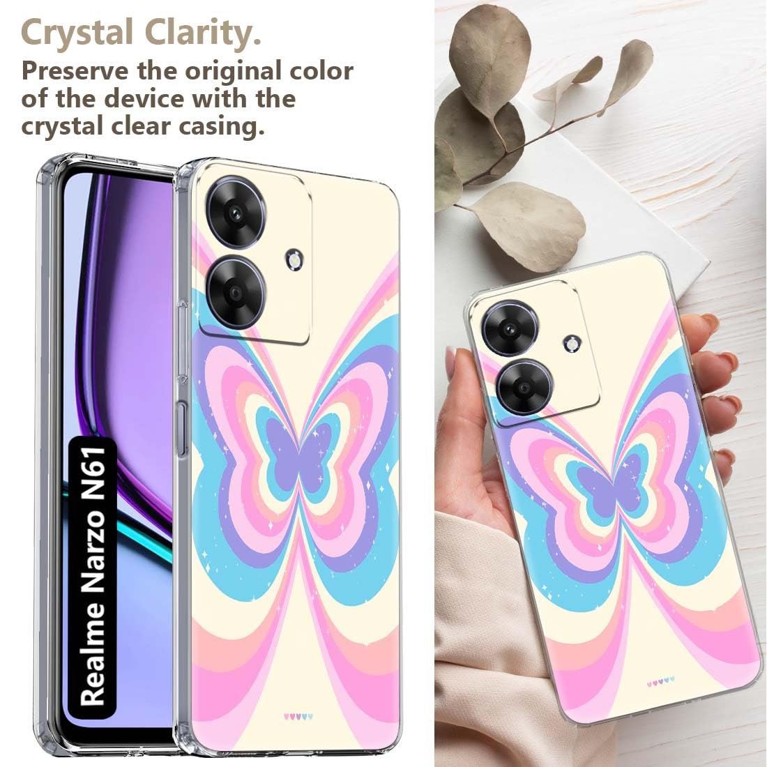 Fashionury Back Cover for realme NARZO N61 Designer, Printed,Transparent,Flexible, Silicon -D1133