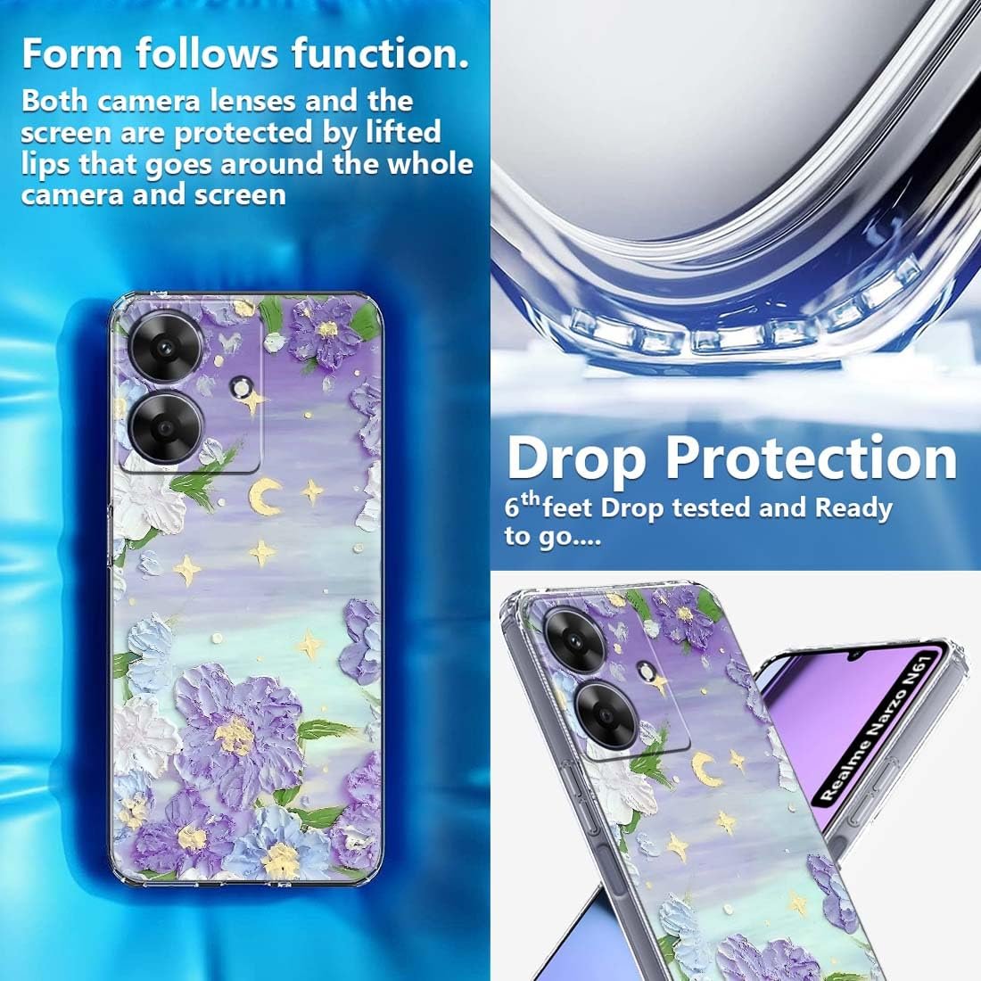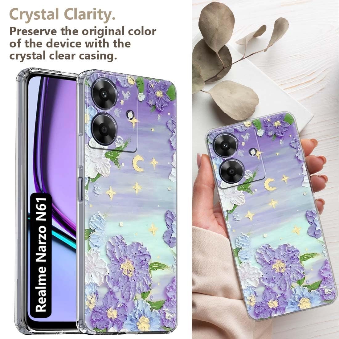 Fashionury Back Cover for realme NARZO N61 Designer, Printed,Transparent,Flexible, Silicon -D3158