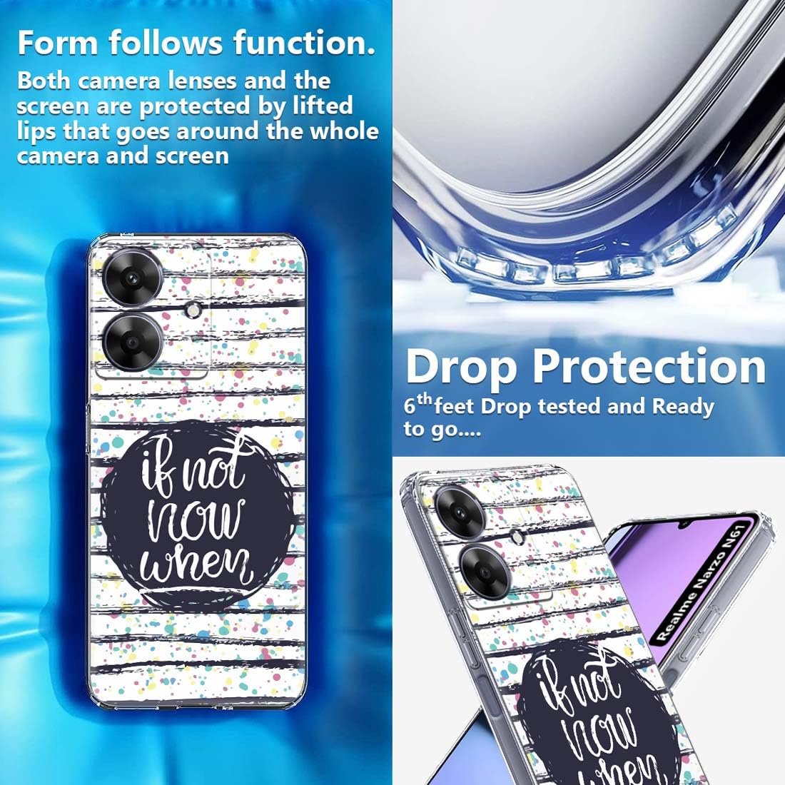 Fashionury Back Cover for realme NARZO N61 Designer, Printed,Transparent,Flexible, Silicon -D3184
