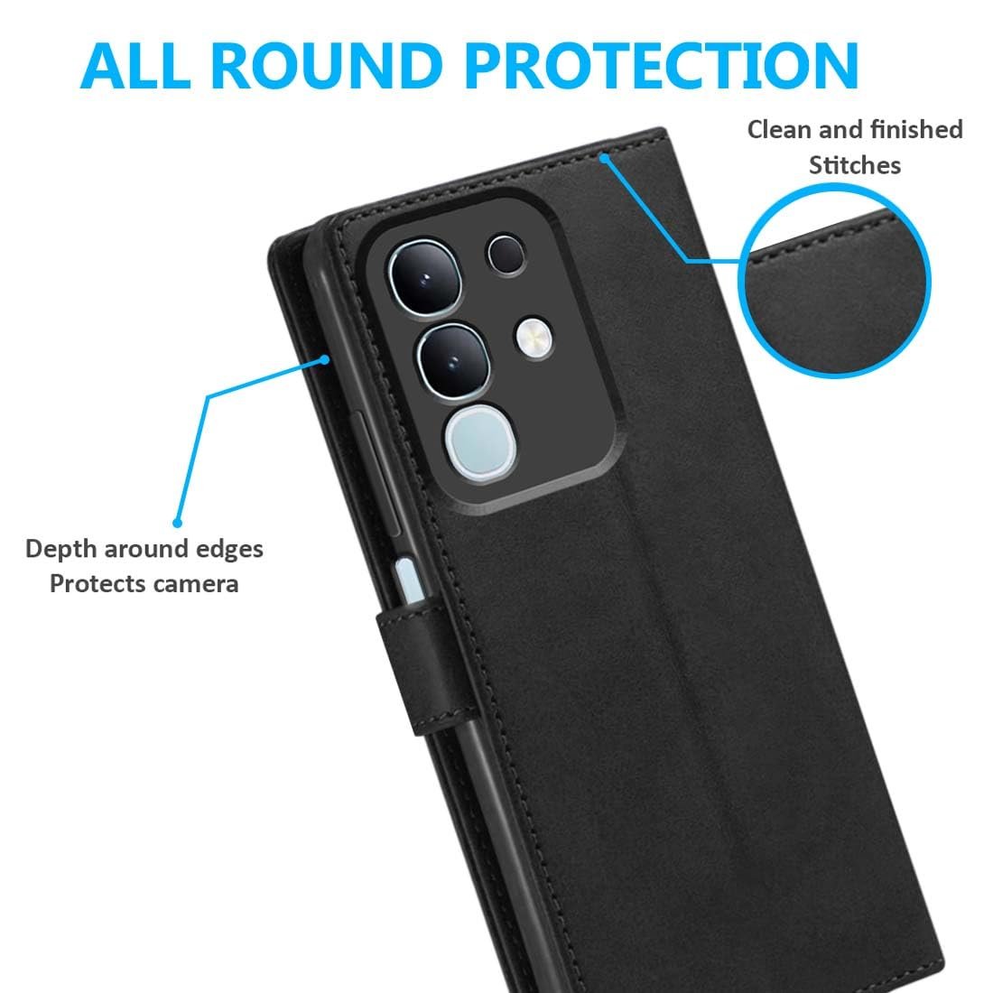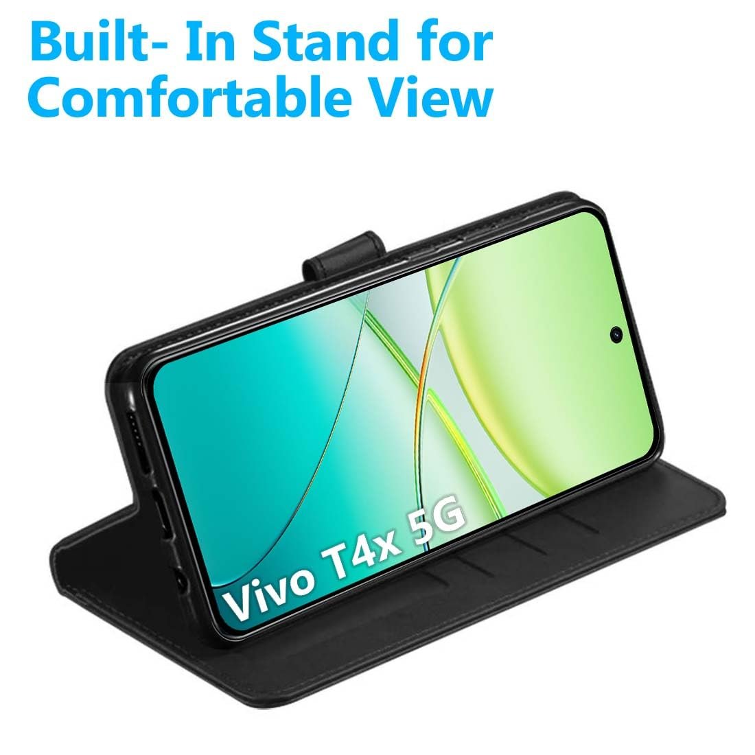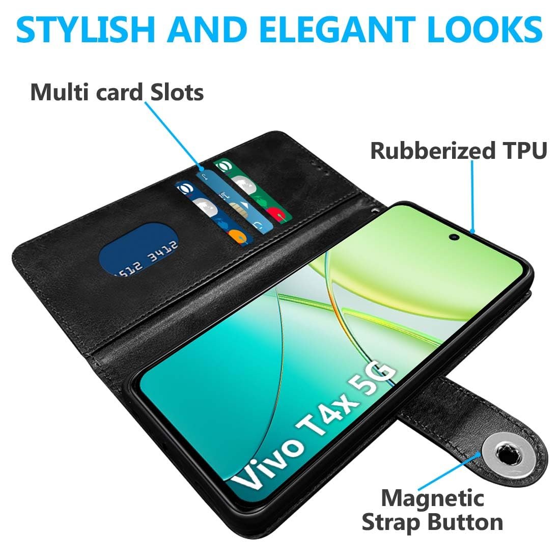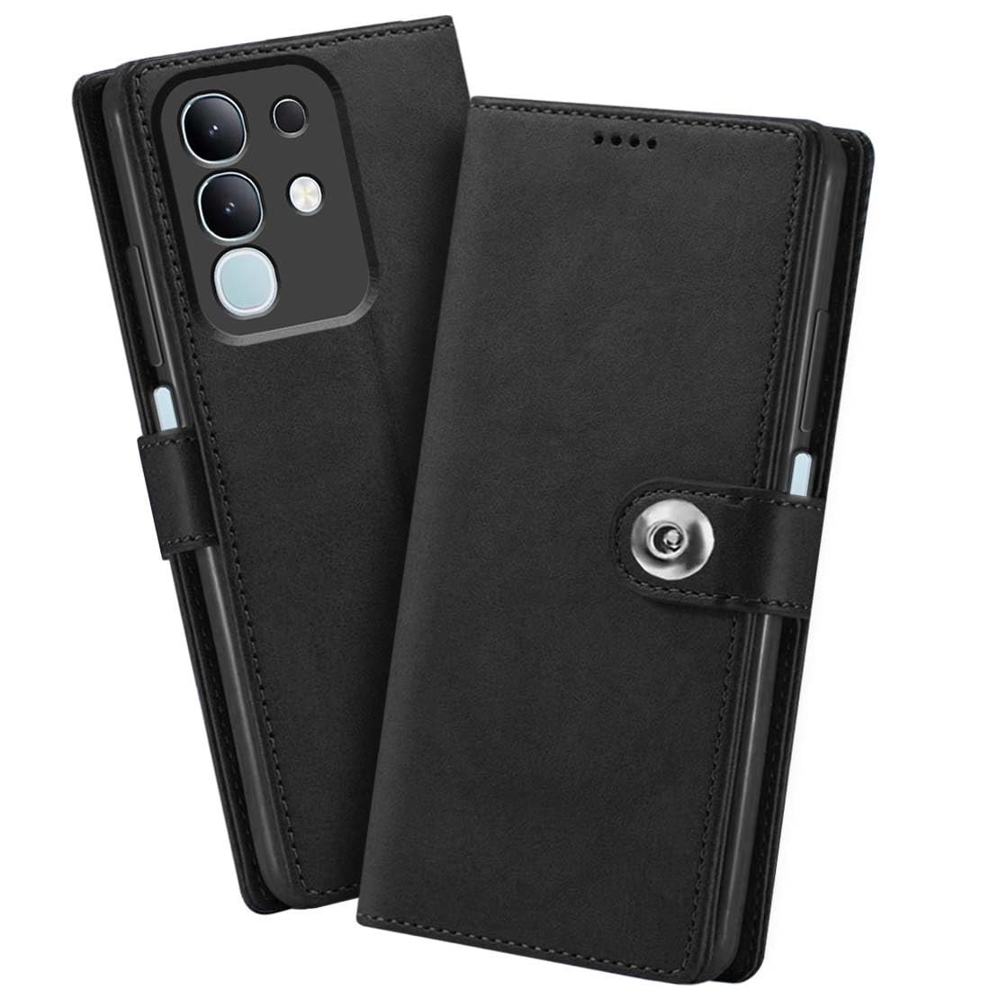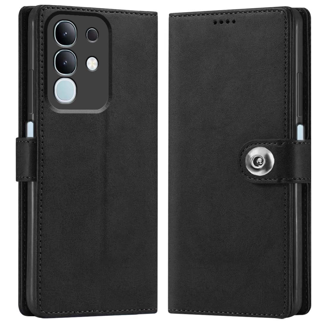 Fashionury Flip Back Case for iQOO Z10x 5G / Vivo T4X 5G | Genuine Leather Finish | Designer Button | Inbuilt Pockets & Stand | Flip Cover Back Case for iQOO Z10x 5G / Vivo T4X 5G (Black)