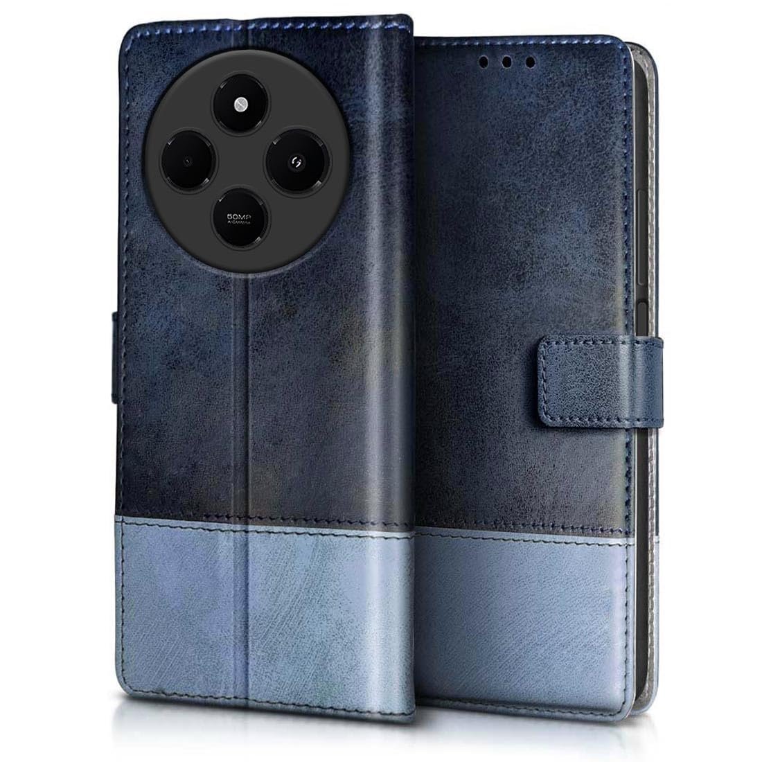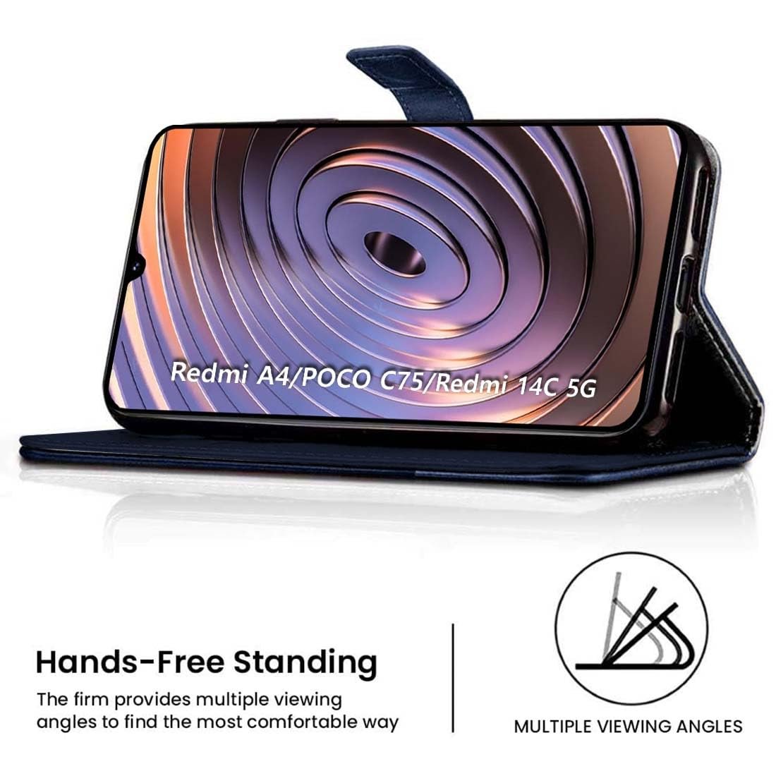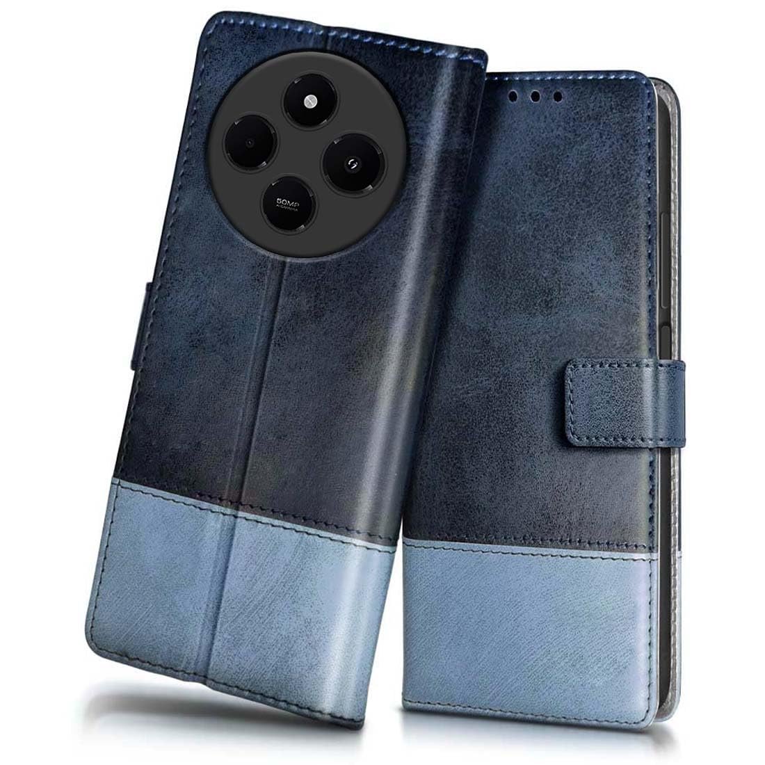 Fashionury Flip Back Case for Redmi A4 5G / Poco C75 5G / Redmi 14C 5G / Poco M7 5G | Genuine Leather Finish | Flip Back Case for Redmi A4 5G / Poco C75 5G / Redmi 14C 5G / Poco M7 5G (Blue with Sky)