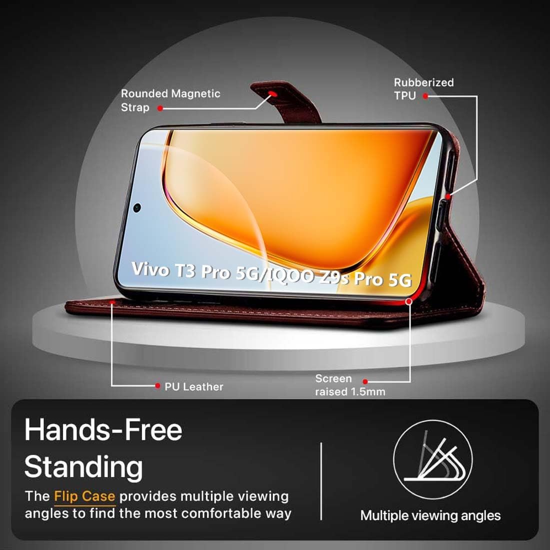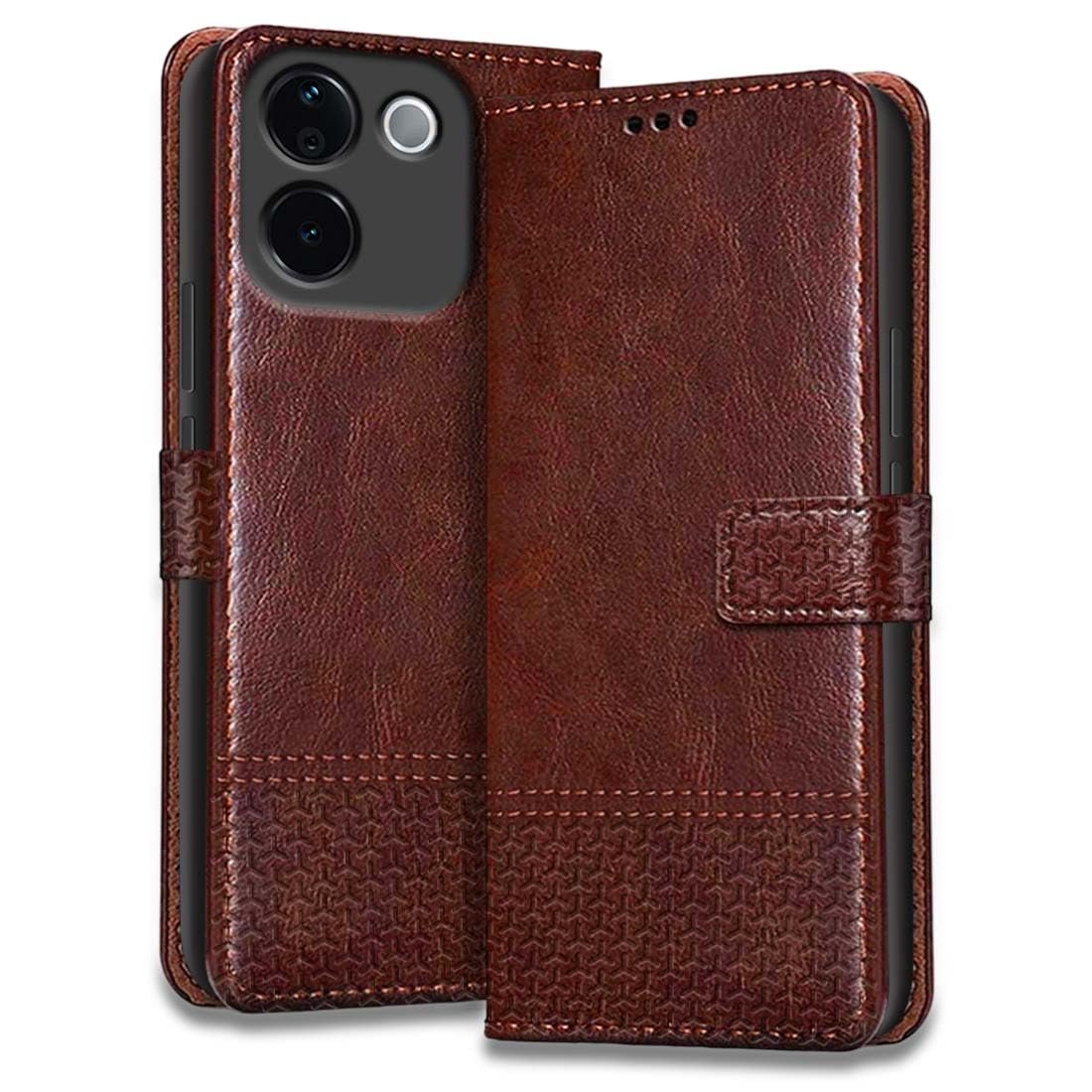 Fashionury Flip Back Cover for iQOO Z9s Pro 5G / Vivo T3 Pro 5G | Genuine Leather Finish | Designer Button | Inbuilt Pockets & Stand | Flip Cover Back Case for iQOO Z9s Pro 5G / Vivo T3 Pro 5G (Brown)
