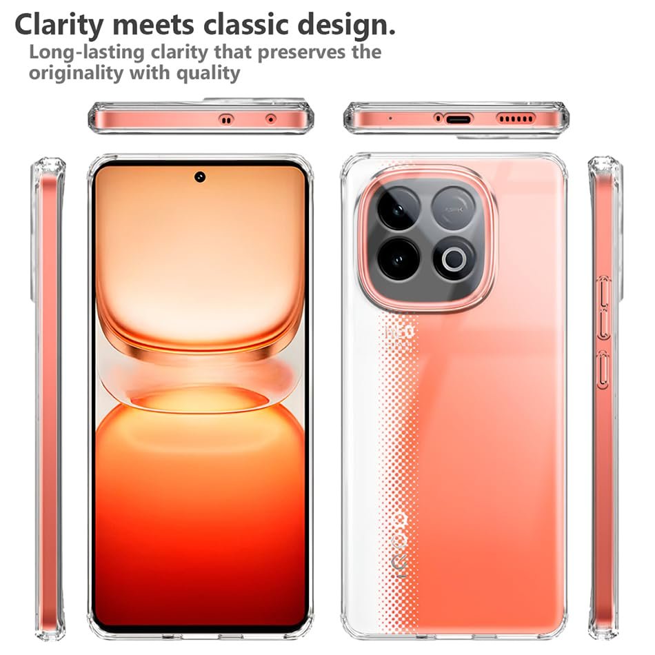 Fashionury Shockproof Crystar Clear Back Case Cover for iQOO Neo 10 5G | Transparent Back Cover | Raised Bumps for Camera & Screen Protection for iQOO Neo 10 5G