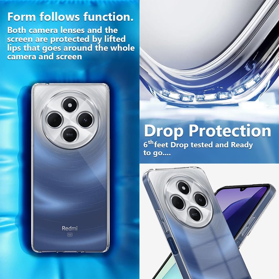 Fashionury Shockproof Crystar Clear Back Case for Redmi A4 5G / Poco C75 5G / Redmi 14C 5G / Poco M7 5G | Raised Bumps for Camera & Screen Protection Back Case Cover