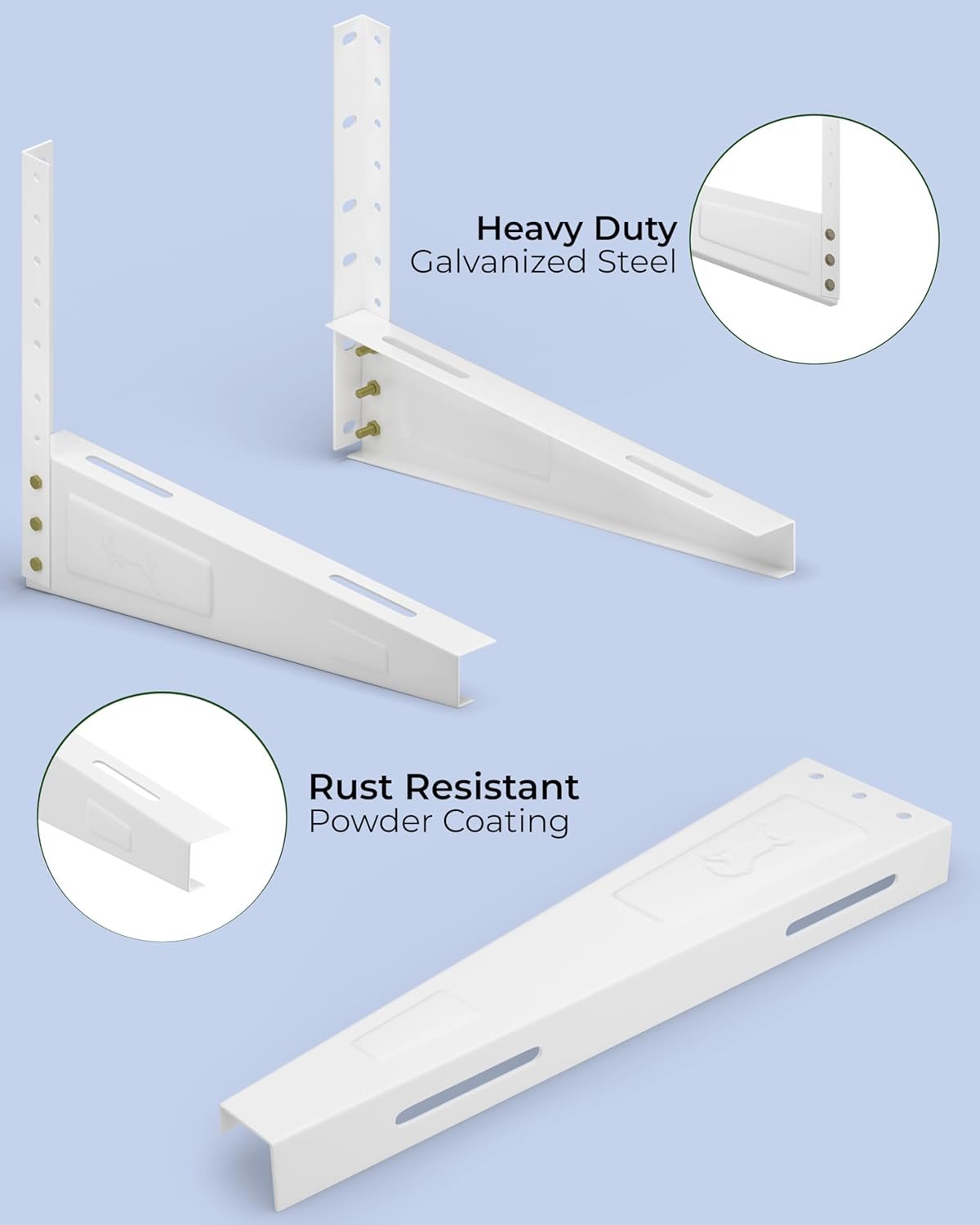 ►PREMIUM GALVANIZED STEEL CONSTRUCTION: Crafted from high-grade GI steel, our split wall mounting bracket offers superior strength and durability, ensuring long-term reliability. With a weight capacity of 300kg, Its adjustable design provides a custom fit, eliminating the uncertainty of selecting the proper size bracket for your ductless system; this corrosion-resistant material guarantees robust support for your HVAC system, providing peace of mind for years to come.