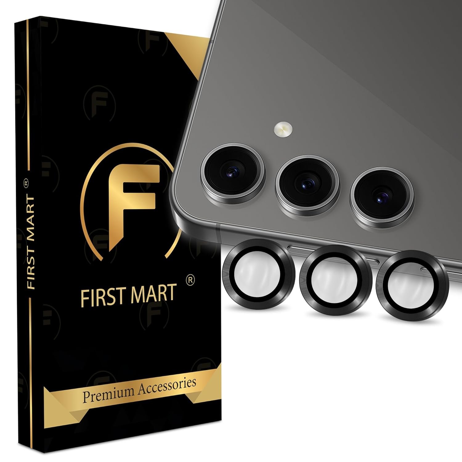 FIRST MART Camera Lens Protector for Samsung Galaxy S24 FE (6.4 Inches) Tough HD Individual Aluminum Alloy Lens Rings Cover, Scratch Resistant, Thin Lens Protection| Black, 1 Pack