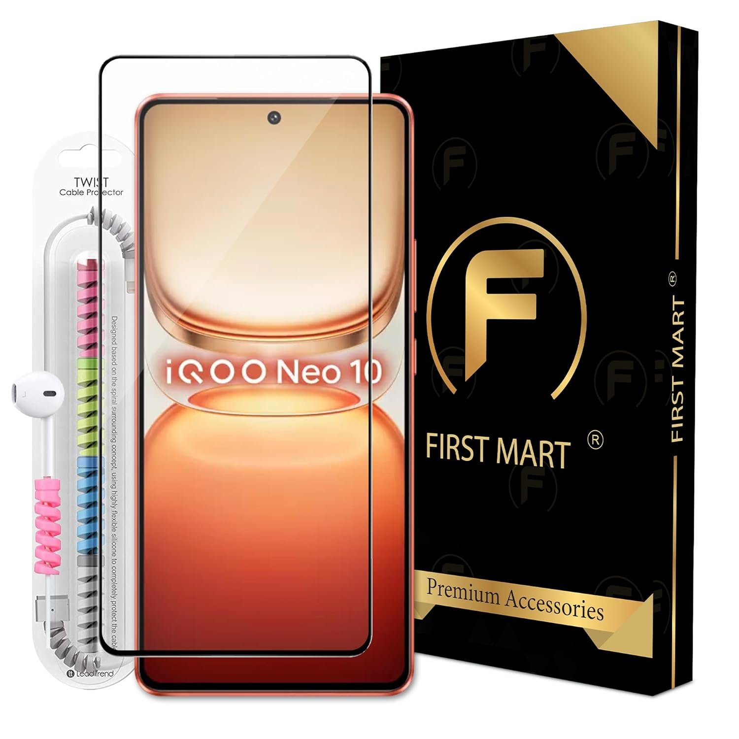 FIRST MART Military Grade Gorilla Tempered Glass Screen Protector Compatible for IQOO Neo 10 and iQOO Neo 10R 5G with Edge to Edge Coverage, Cable Protector and Easy Installation kit (6.78 Inches)