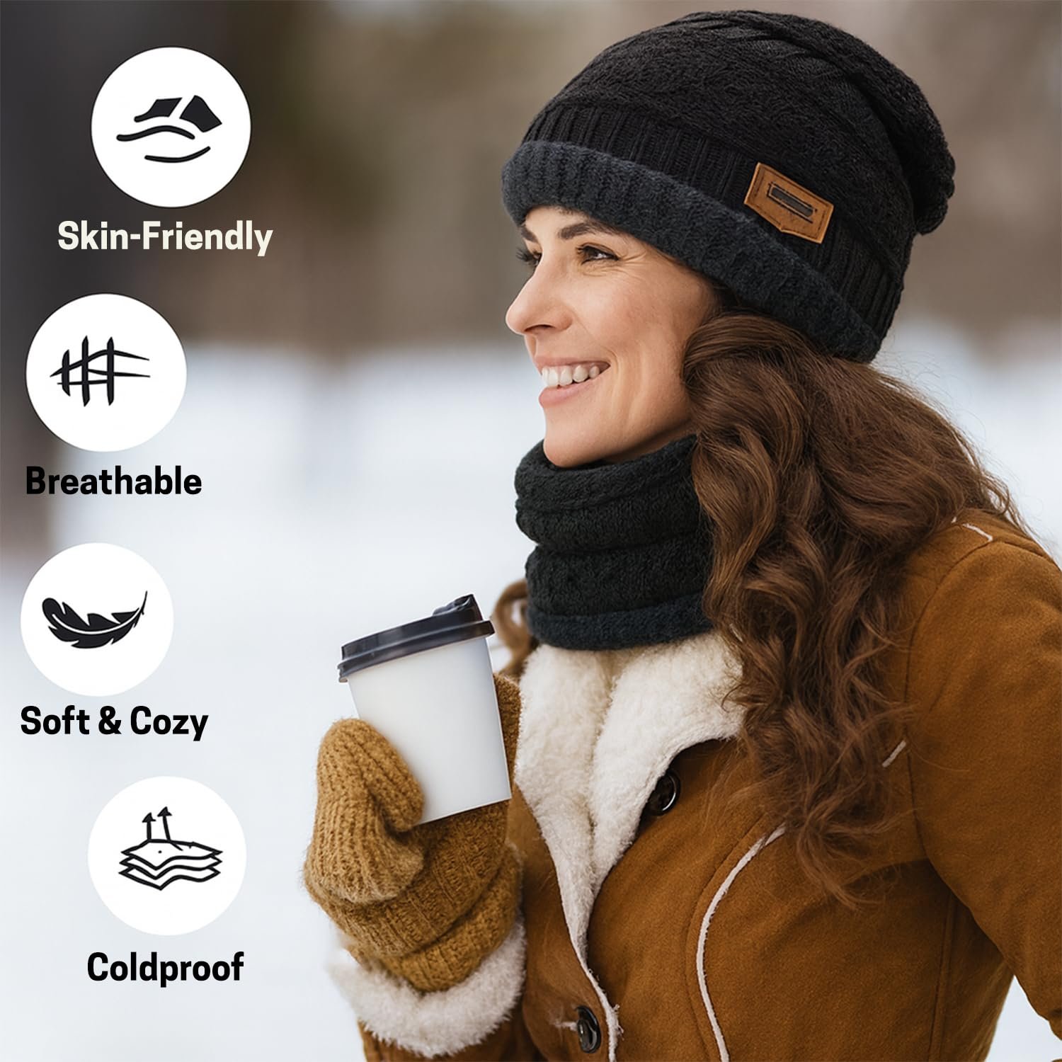 FirstFit Winter 3-in-1 Set – Premium Knitted Unisex Beanie Hat, Fleece-Lined Thermal Scarf & Insulated Gloves – Cozy, Stylish, Cold Weather Gear for Men & Women, Ideal for Travel, Work