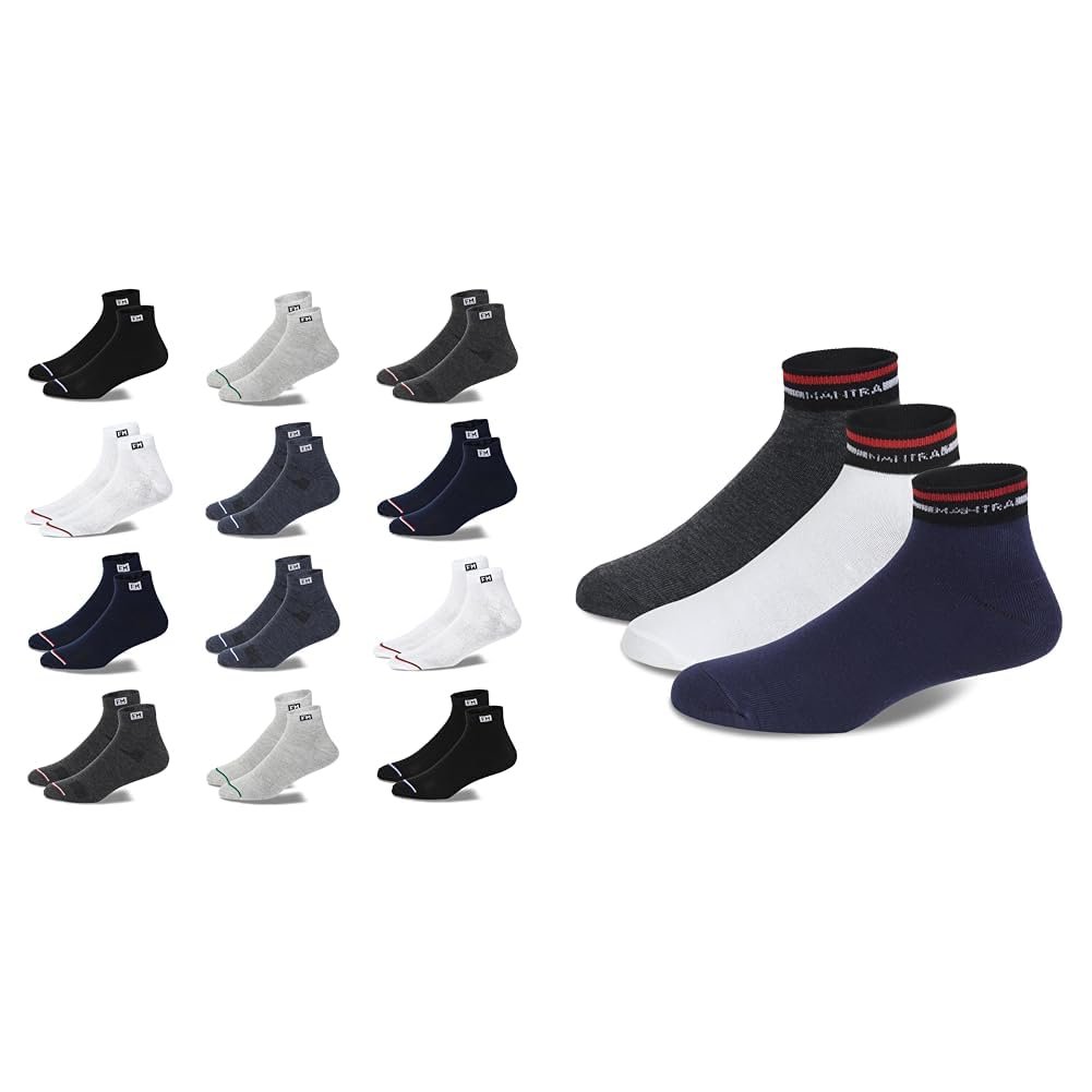 Fitness Mantra® Sports Ankle Cotton Socks | Free Size| Breathable| Daily Use| Multicolor| (12) 3 Pairs Sports Ankle Cotton Socks | Free Size| Breathable| Daily Use| Multicolor|