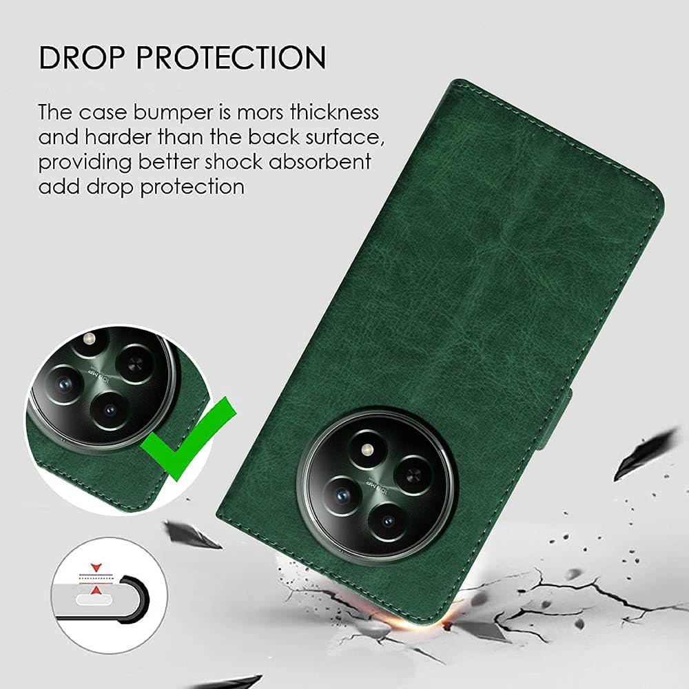Flip Cover Back Case for Realme 12 5G / 13 5G | Premium Leather Finish | Inbuilt Pockets & Stand | Flip Cover Back Case for Realme 12 5G / 13 5G / 12x 5G / C65 5G / Narzo 70x 5G/N65 5G (Green)