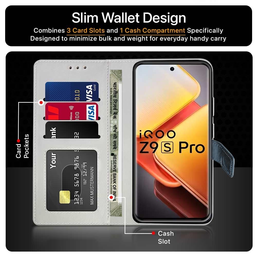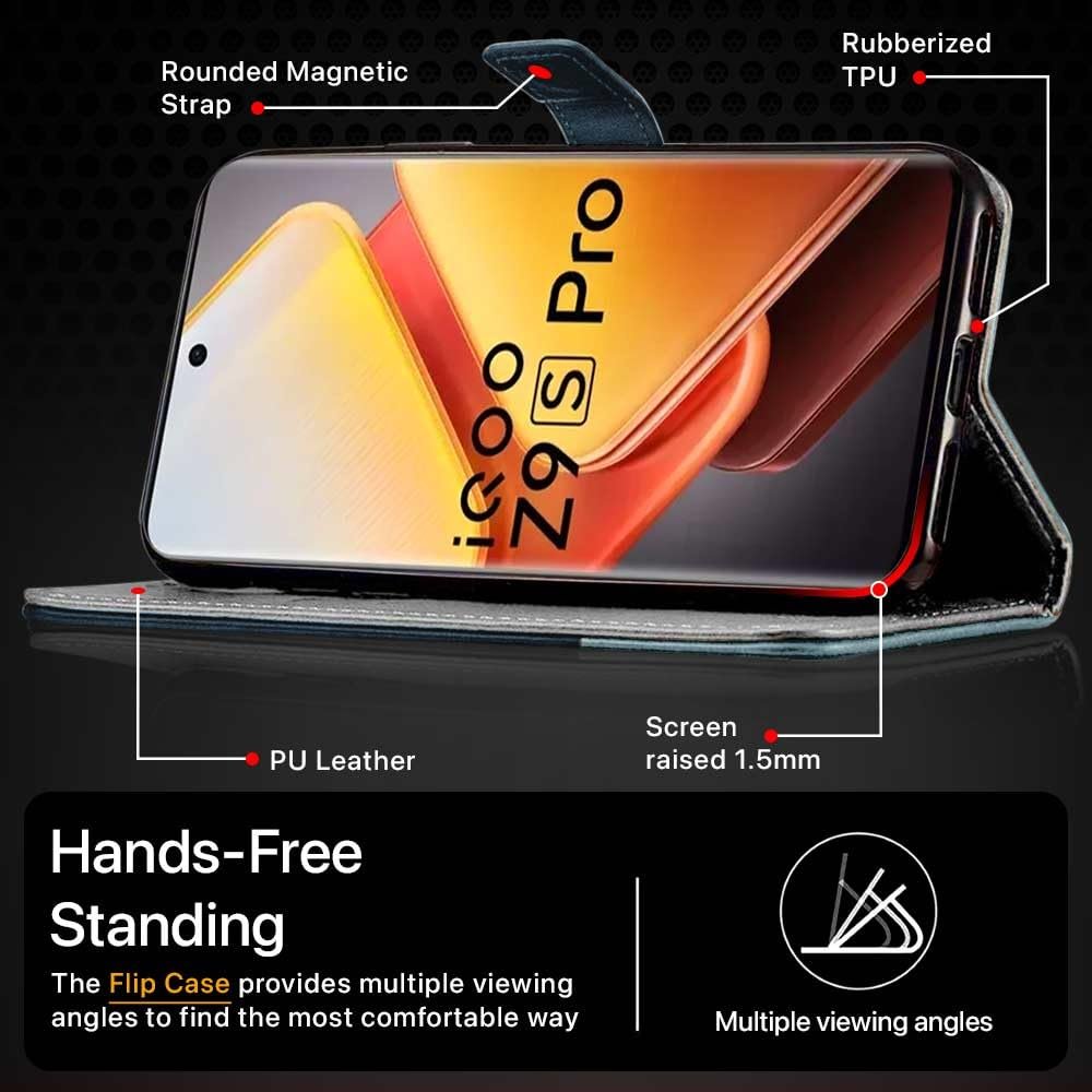 Precisely Crafted For iQOO Z9s Pro 5G | Vivo T3 Pro 5G – Premium Vegan Leather Flip Back Case Cover
