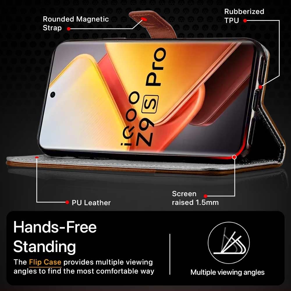 Precisely Crafted For iQOO Z9s Pro 5G | Vivo T3 Pro 5G – Premium Vegan Leather Flip Back Case Cover