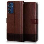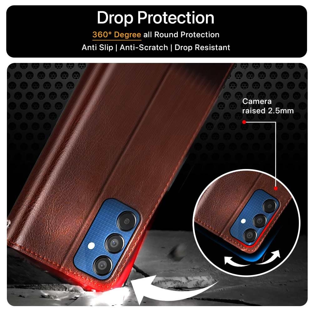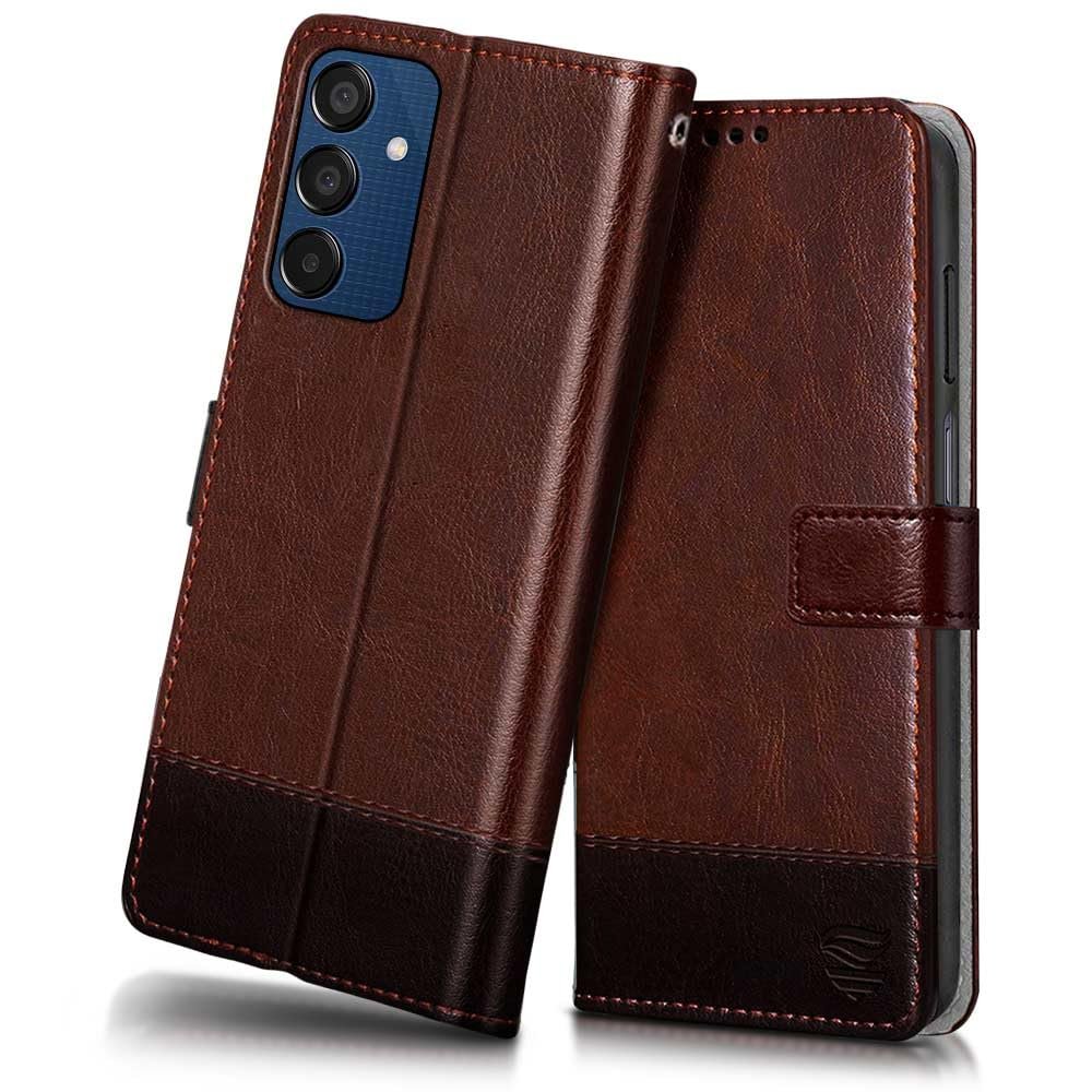 Amazon Brand – Solimo Shock Proof Flip Cover Back Case Cover for Samsung Galaxy M05 (Flexible | Leather Finish | Card Pockets Wallet & Stand | Chestnut Brown