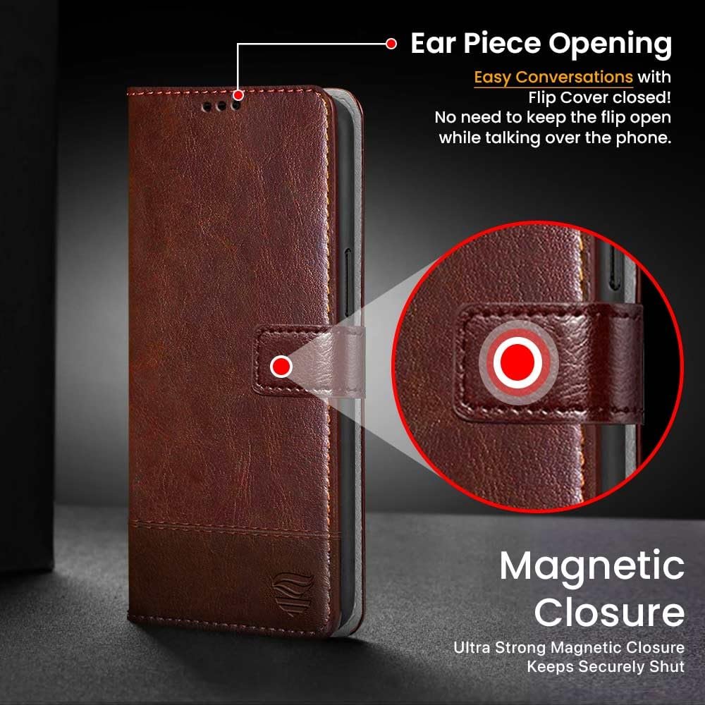 Precisely Crafted For Vivo T4 lite 5G | iQOO Z10 lite 5G | Y04 4G | Y19 5G | Y19e – Premium Vegan Leather Flip Back Case Cover
