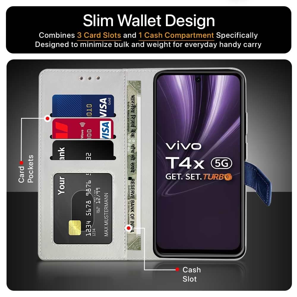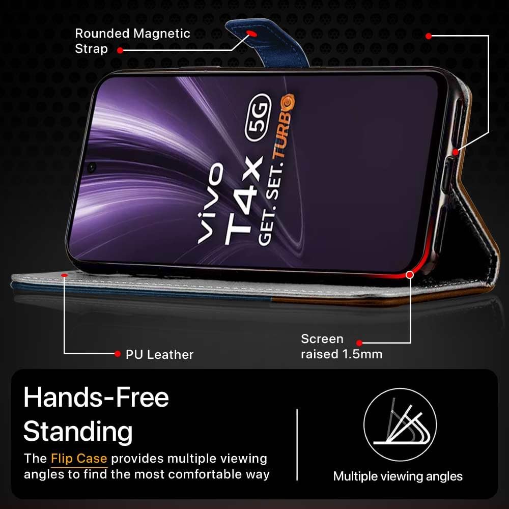 Precisely Crafted For Vivo T4X 5G | IQOO Z10X 5G – Premium Vegan Leather Flip Back Case Cover