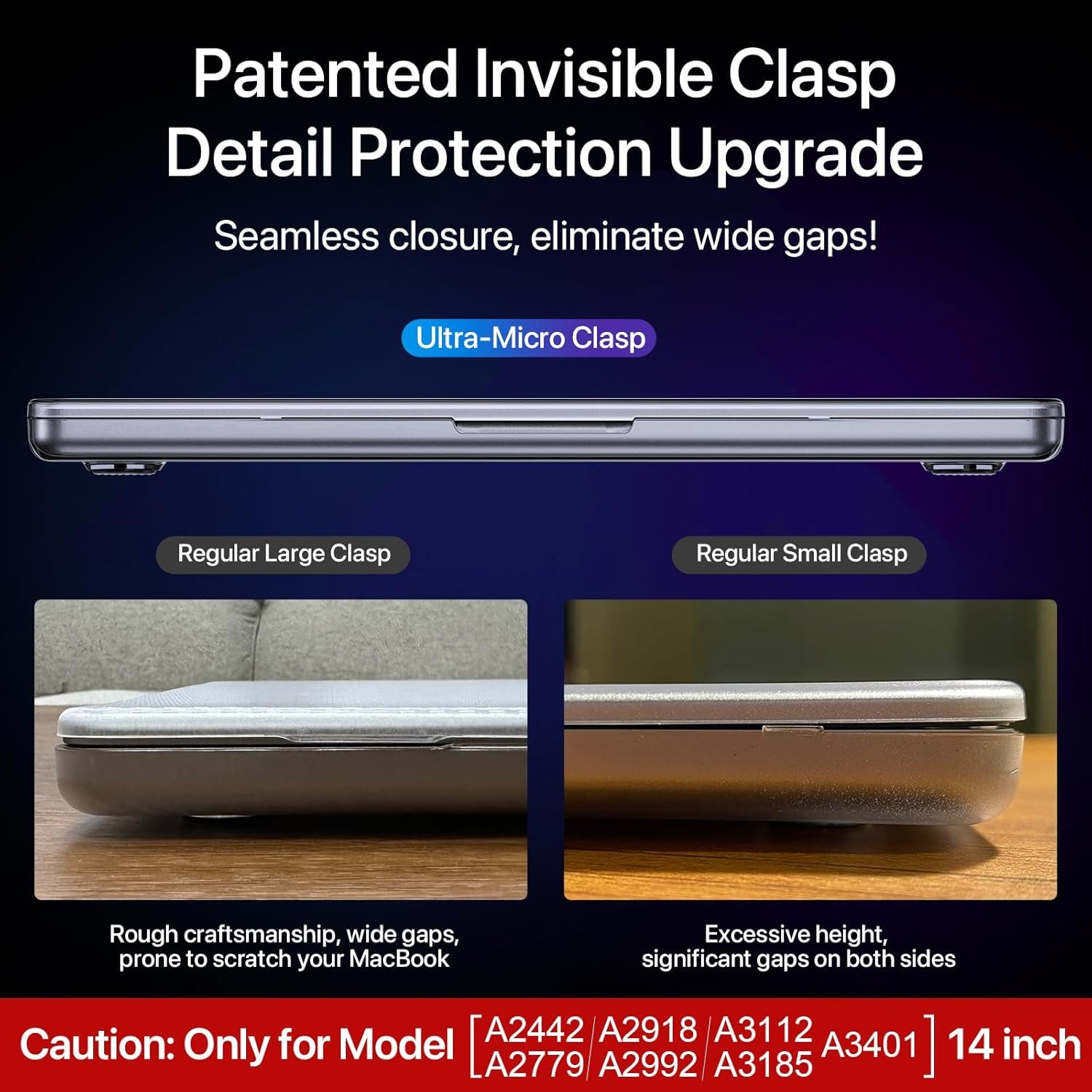 Precise Cutouts, Seamless Fit: Designed for MacBook Pro 14 inch case, this case is molded according to original Macbook using micro 3D cutting tech. It fits snugly like a second skin, allows easy access to all ports and ensures smooth opening and closing