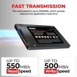 Blazing-Fast Performance: Experience read speeds up to 550 MB/s and write speeds up to 500 MB/s with SATA III 6GB/s interface, ensuring quicker boot times, faster file transfers, and smoother multitasking.